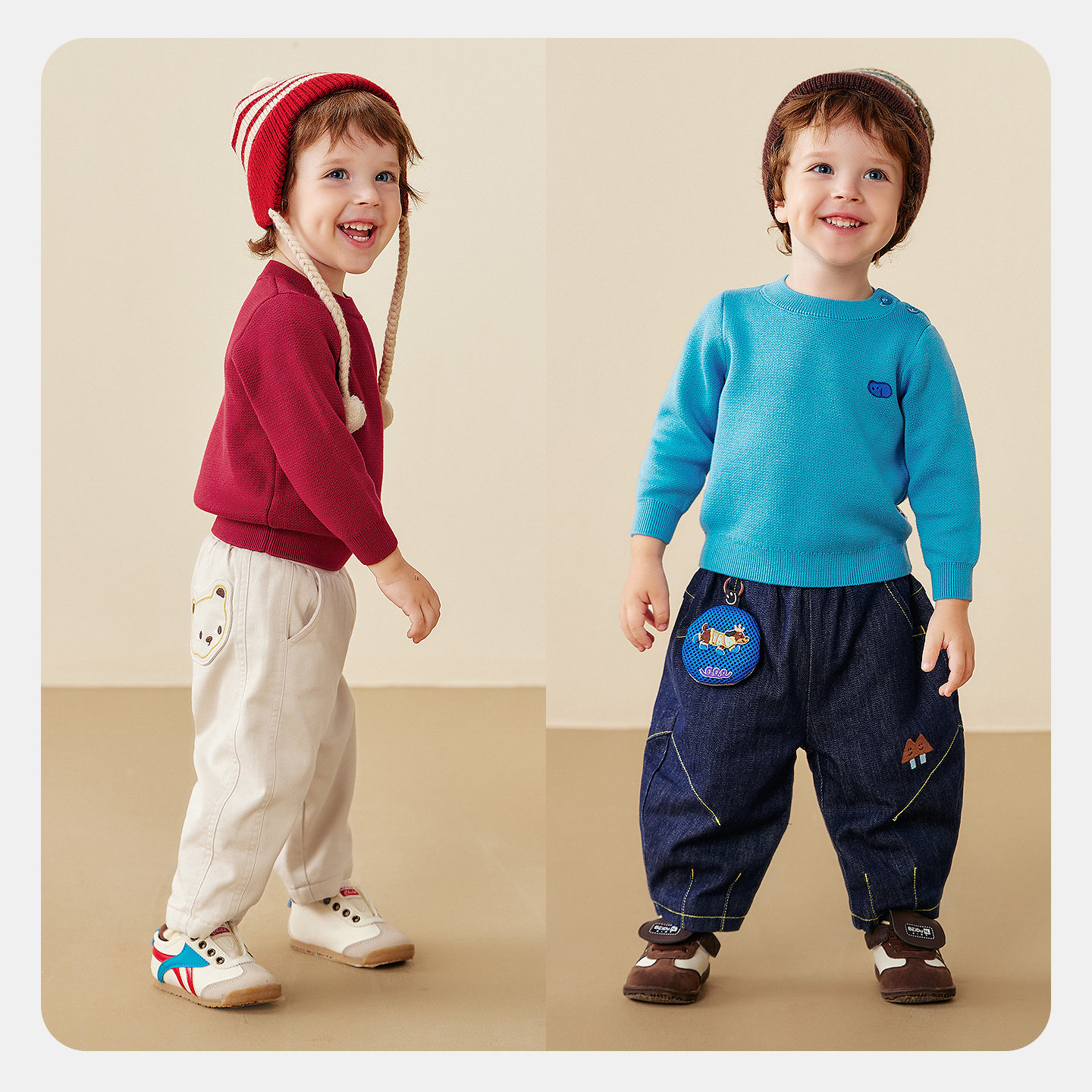 [骏马福裳]齐齐熊男童毛衣开衫冬装新年红色加厚宝宝毛线外套上衣