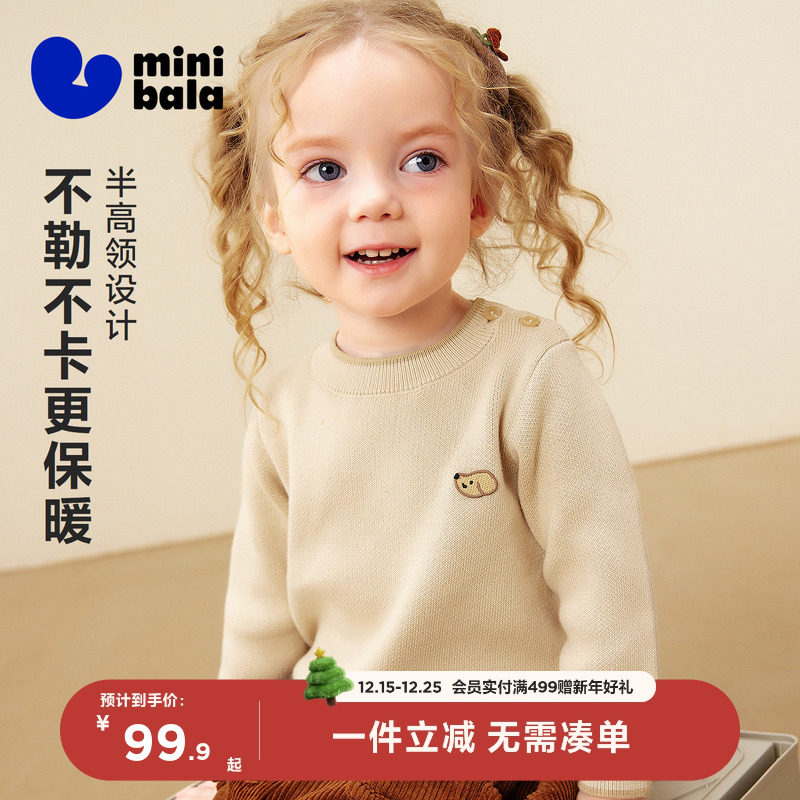 迷你巴拉男女童宝宝半高领毛衣打底衫2025冬亲肤新年红色圣诞上衣