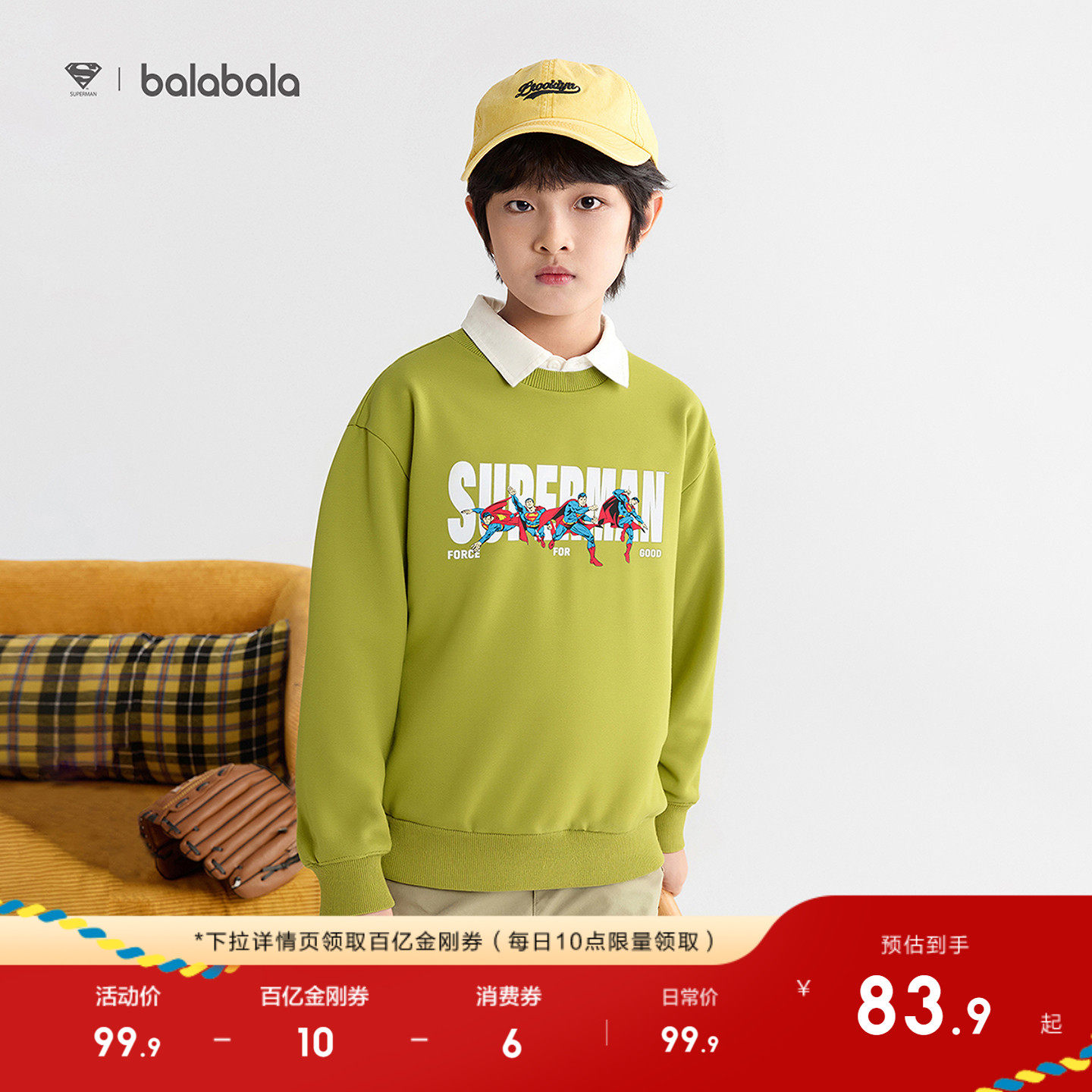 DC超人联名款,加绒长袖卫衣
