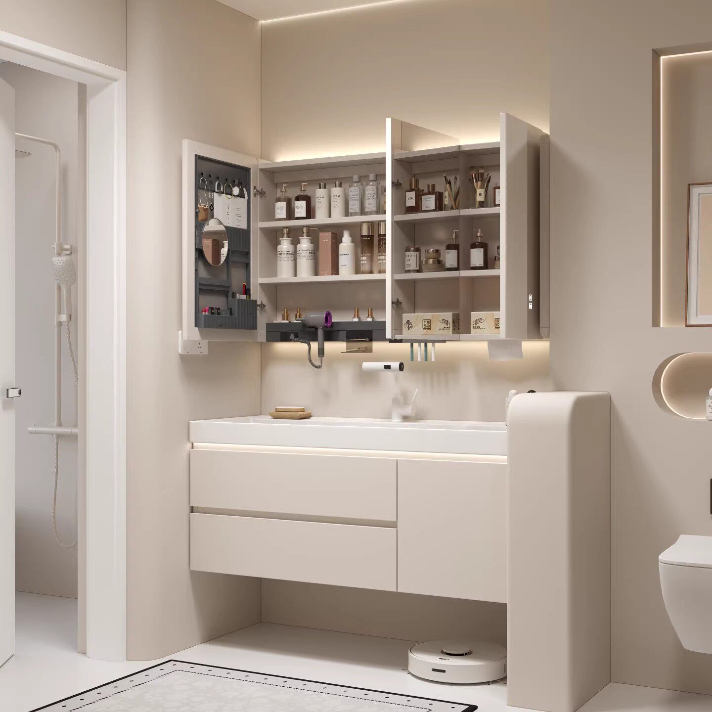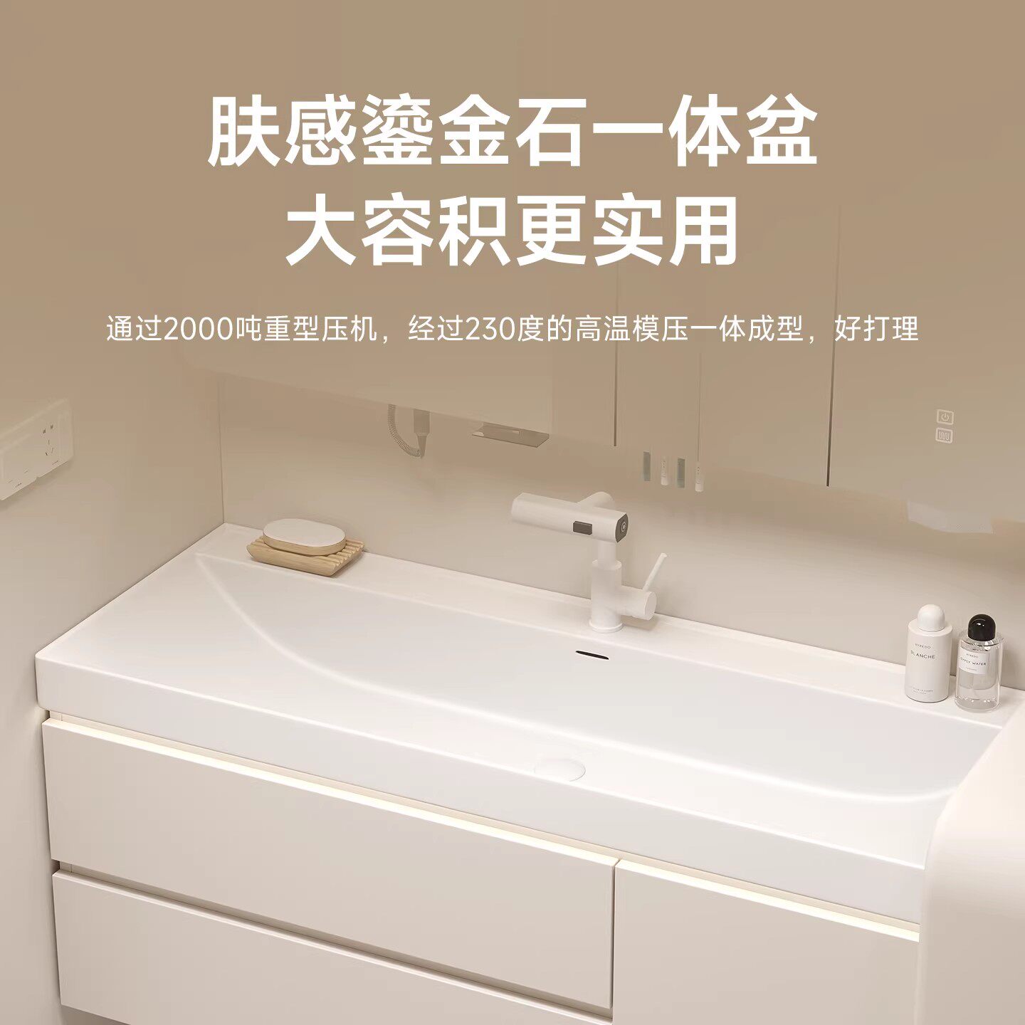 新款海洋盆浴室柜鎏金石一体盆洗漱台奶油风卫生间洗脸洗手池组合
