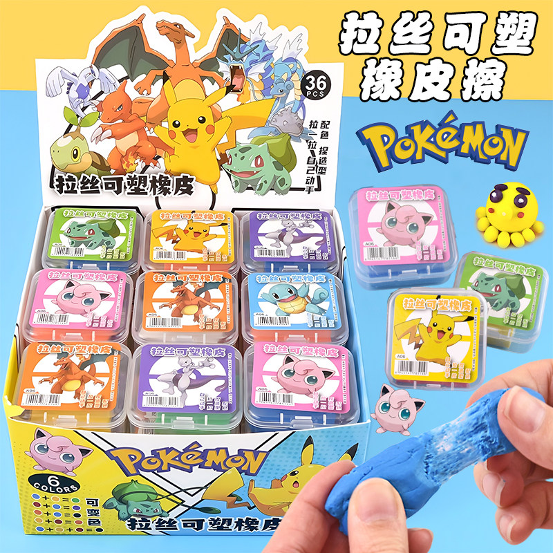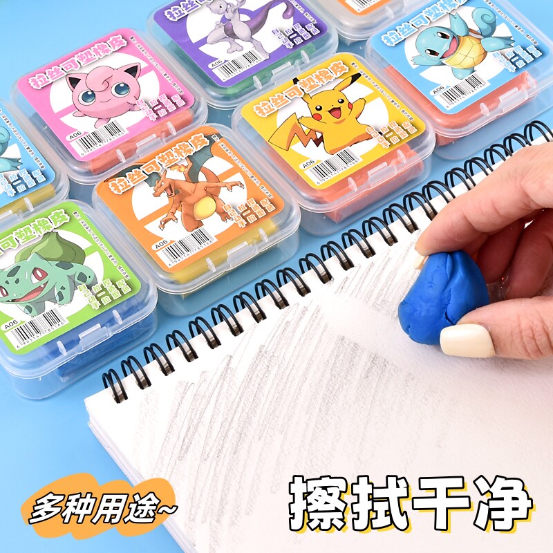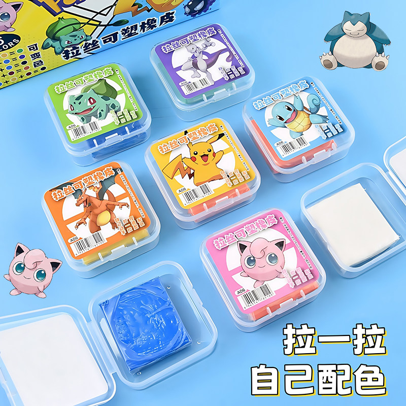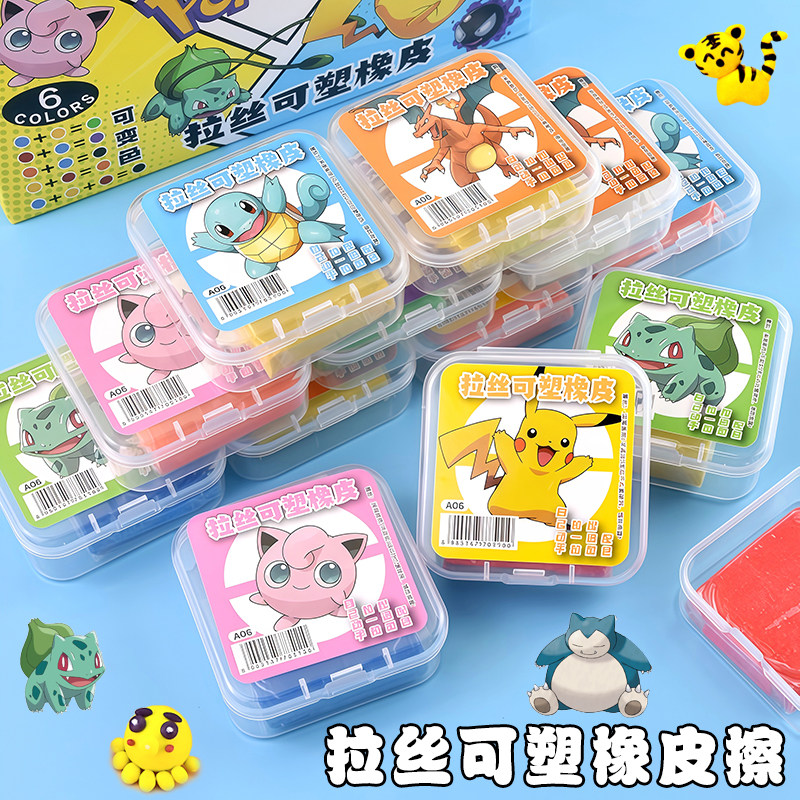 皮卡丘可塑橡皮擦可拉丝不易沾手变色彩色描绘画学生美术生宝可梦