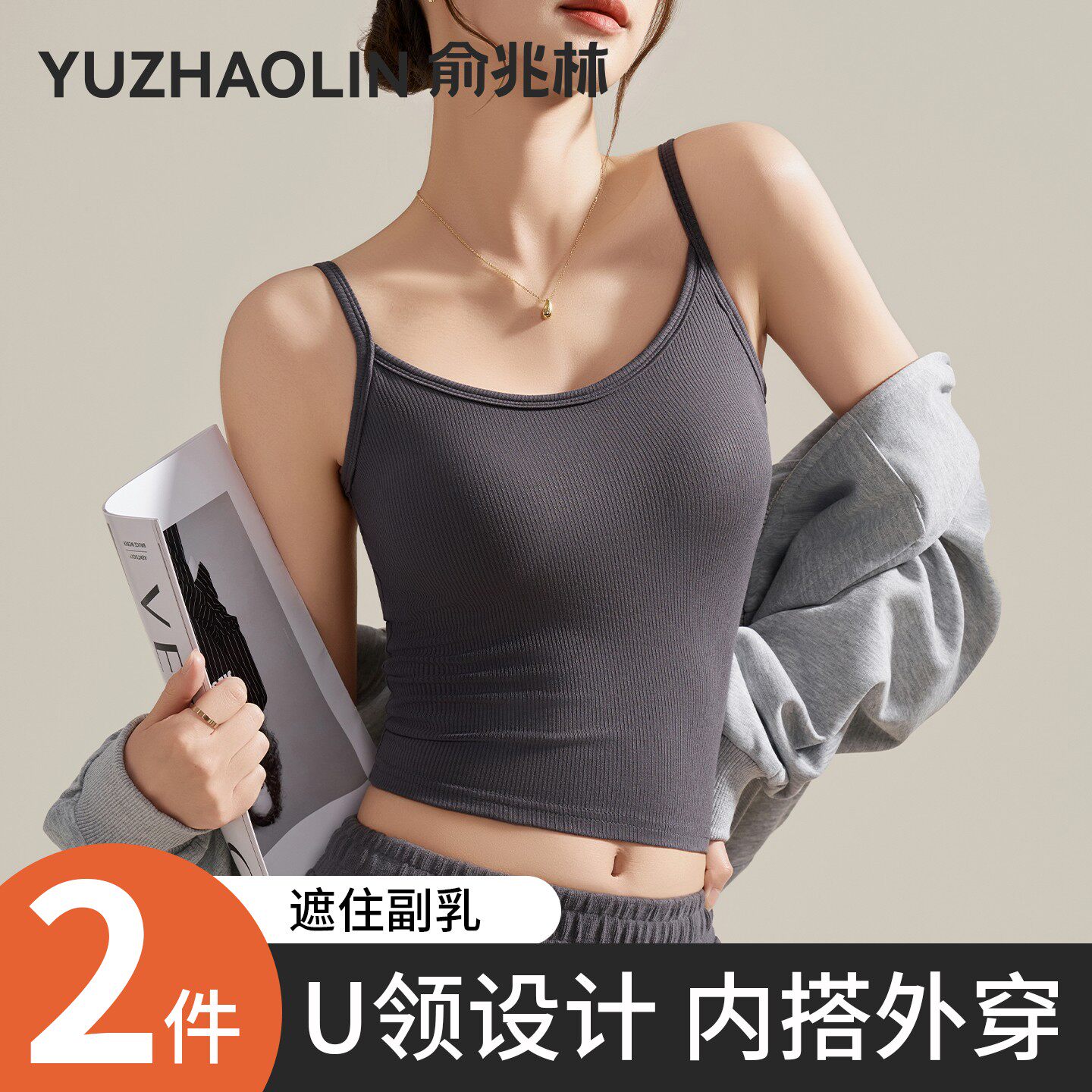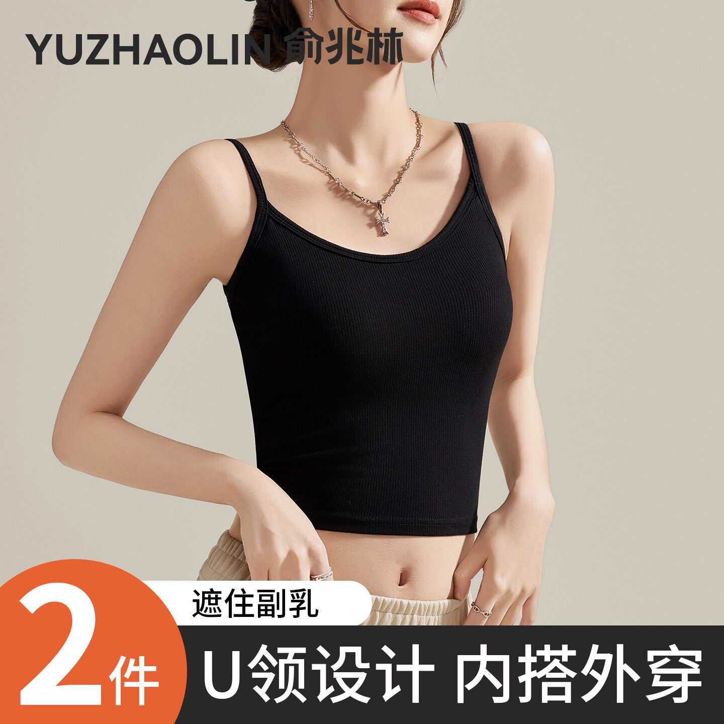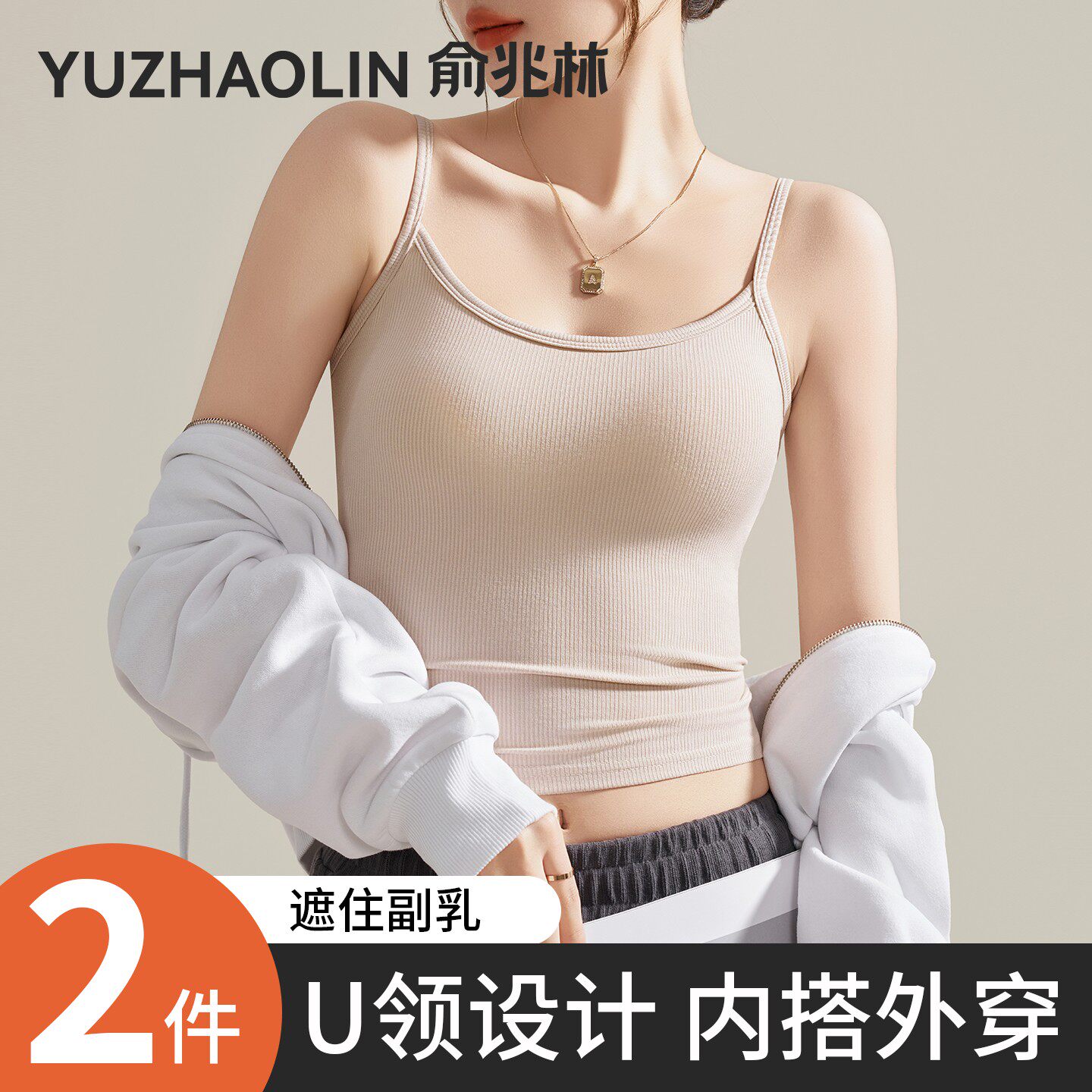 白色u领吊带背心女内搭2026新款春夏季带胸垫遮副乳无袖打底上衣