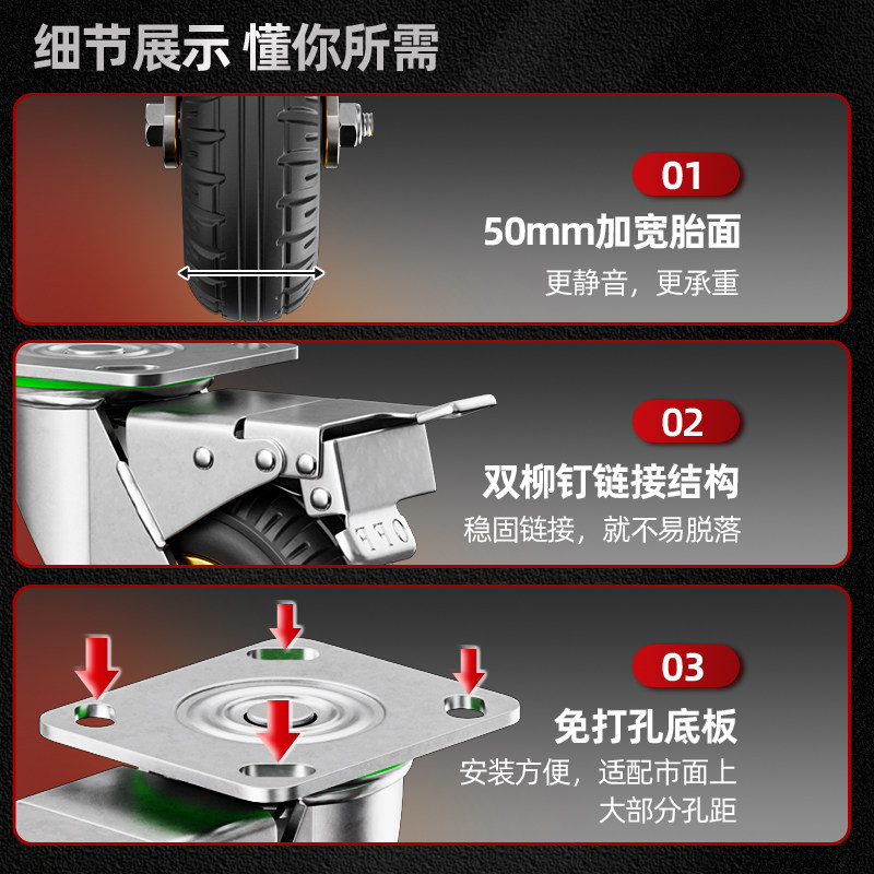 静音橡胶万向轮重型脚轮6寸小推车板车拉车拖车轮子8寸带刹车滑轮