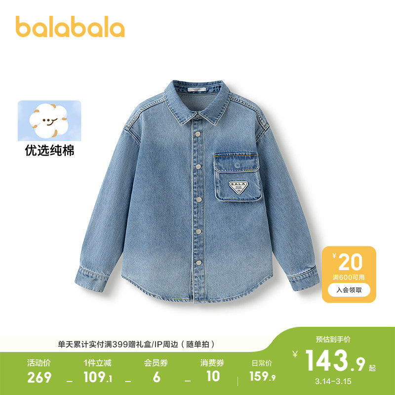 巴拉巴拉童装男童长袖衬衫儿童上衣2026新考春秋装纯棉牛仔时尚潮
