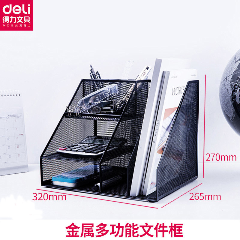 得力79075金属文件筐网状铁质文件框文件架创意多层收纳框书立书