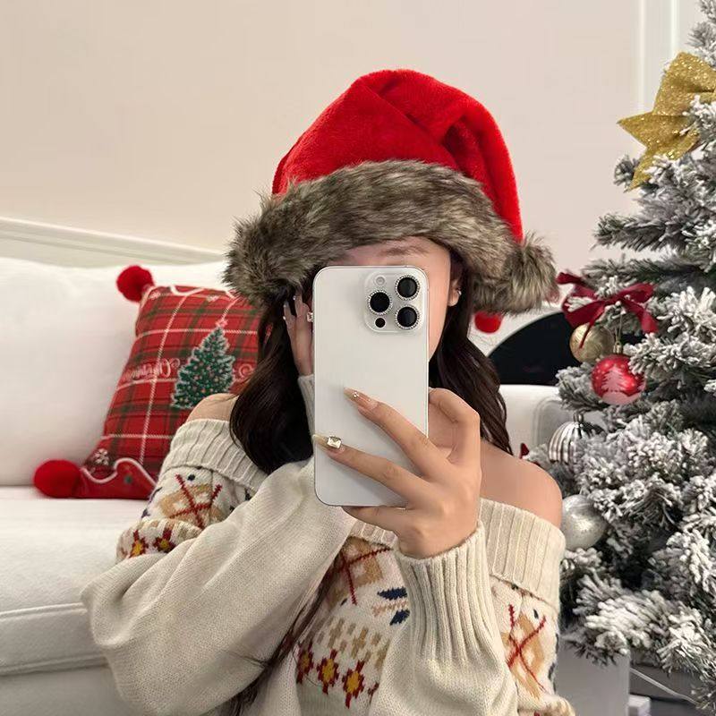 圣诞氛围感 棕色毛绒圣诞帽节日穿搭装扮头饰拍照道具秋冬配饰