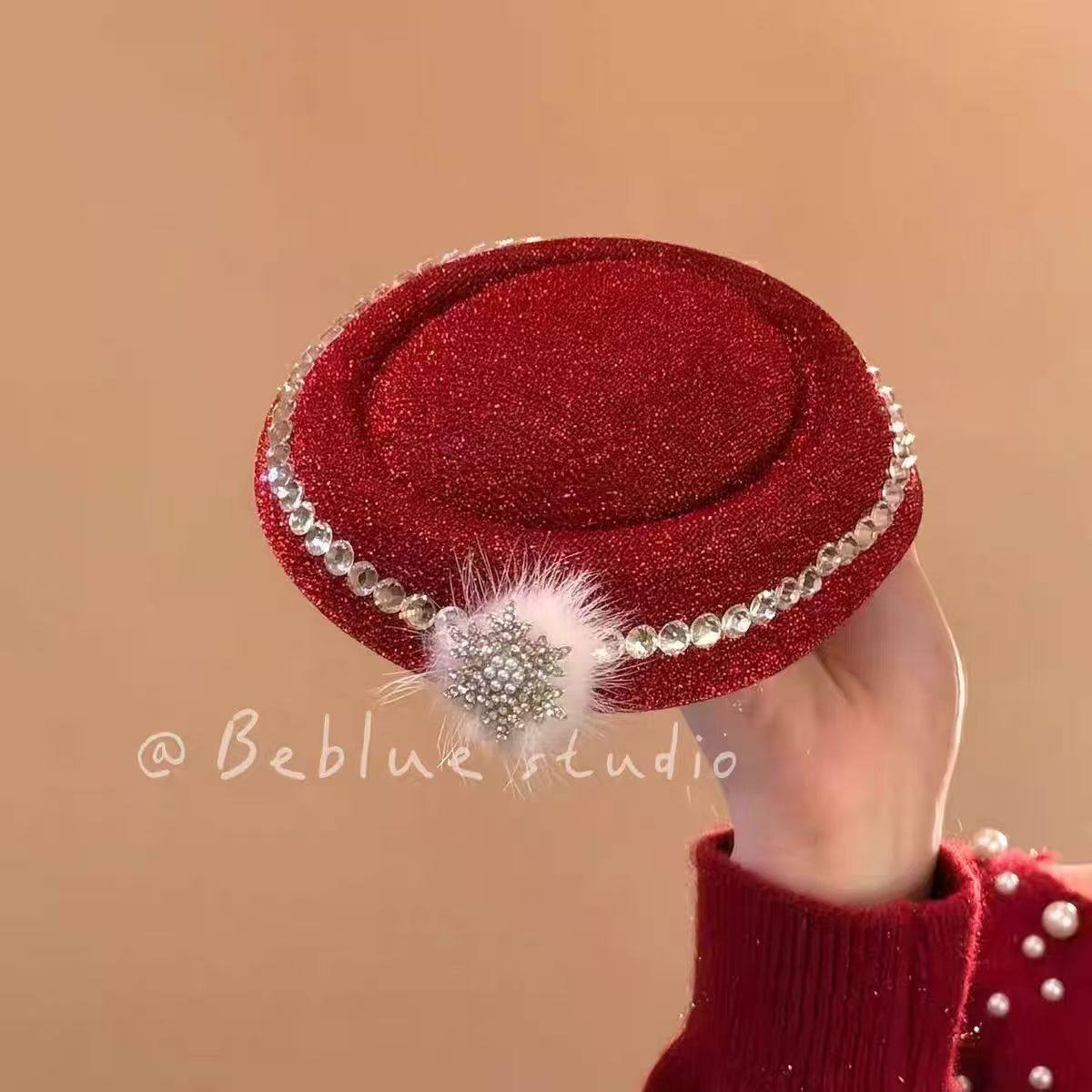 星尘礼遇~红色闪钻小礼帽发夹女2025新款高端圣诞节新年发饰配饰