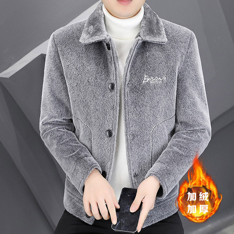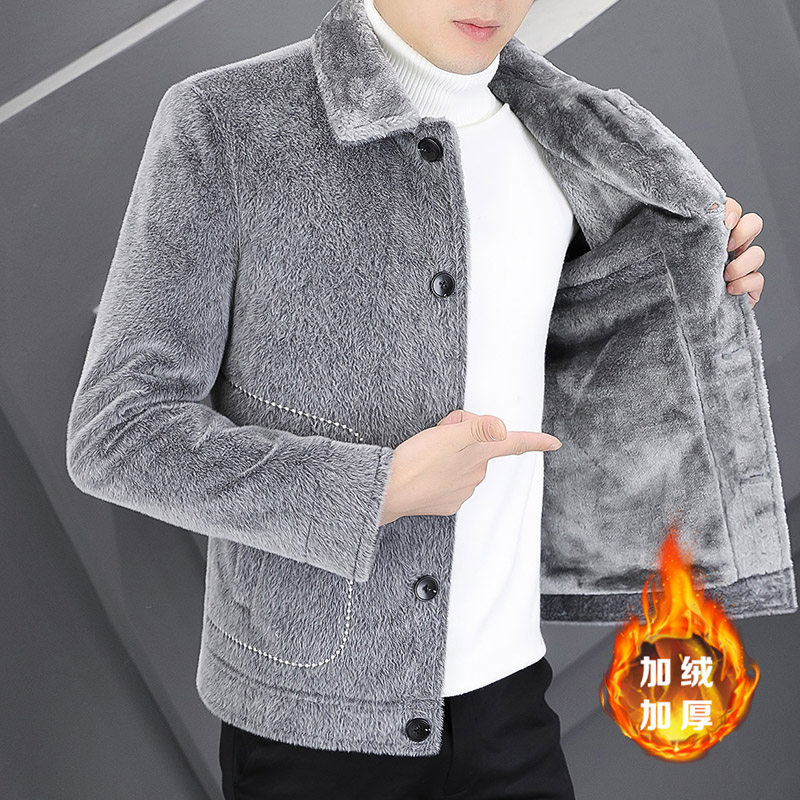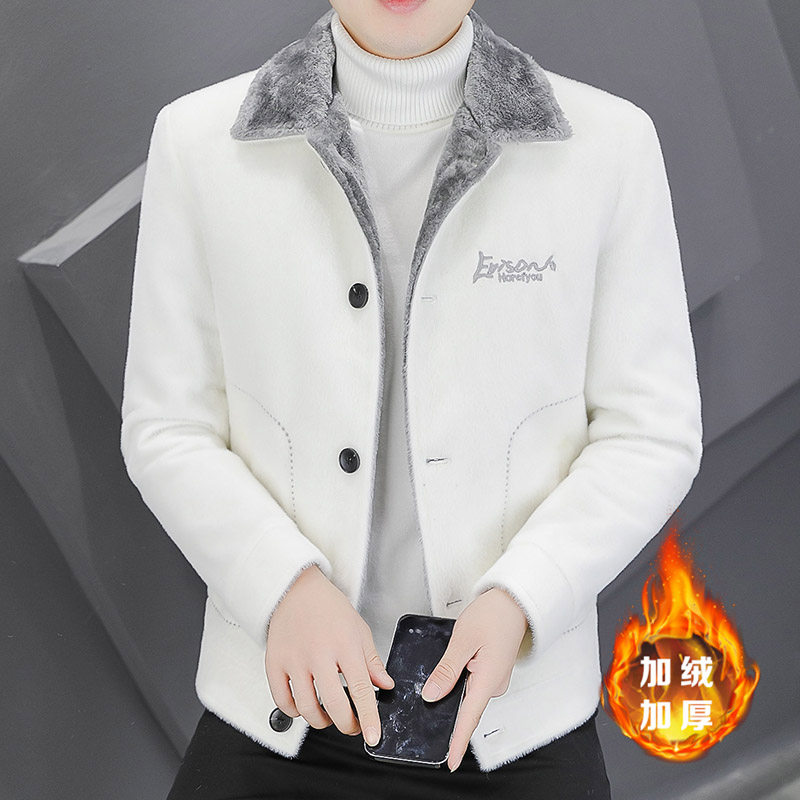 秋冬季水貂绒夹克男士加厚加厚休闲毛呢外套痞帅韩版潮流短款风衣