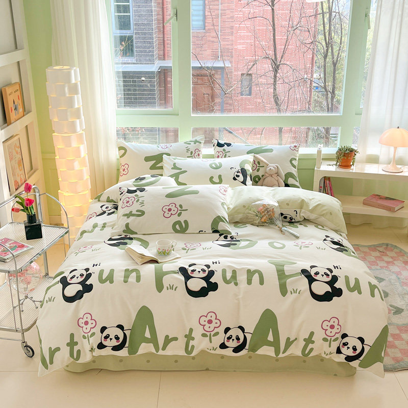 无印良品全棉四件套学生宿舍纯棉卡通儿童被套床单三件套床上用品