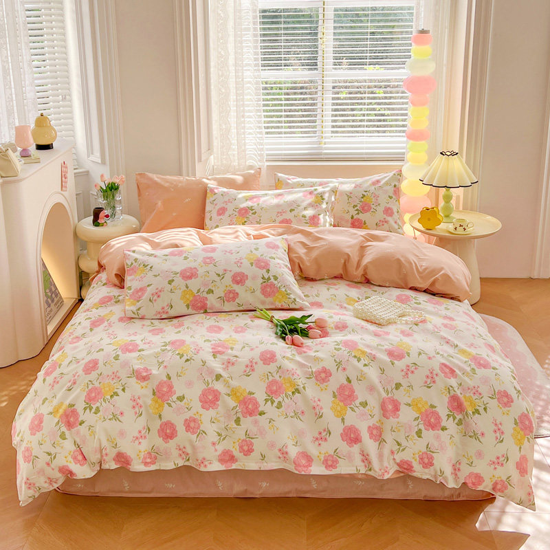 A类双层纱床上四件套纯棉全棉新款田园床单件被套被罩宿舍三件套4