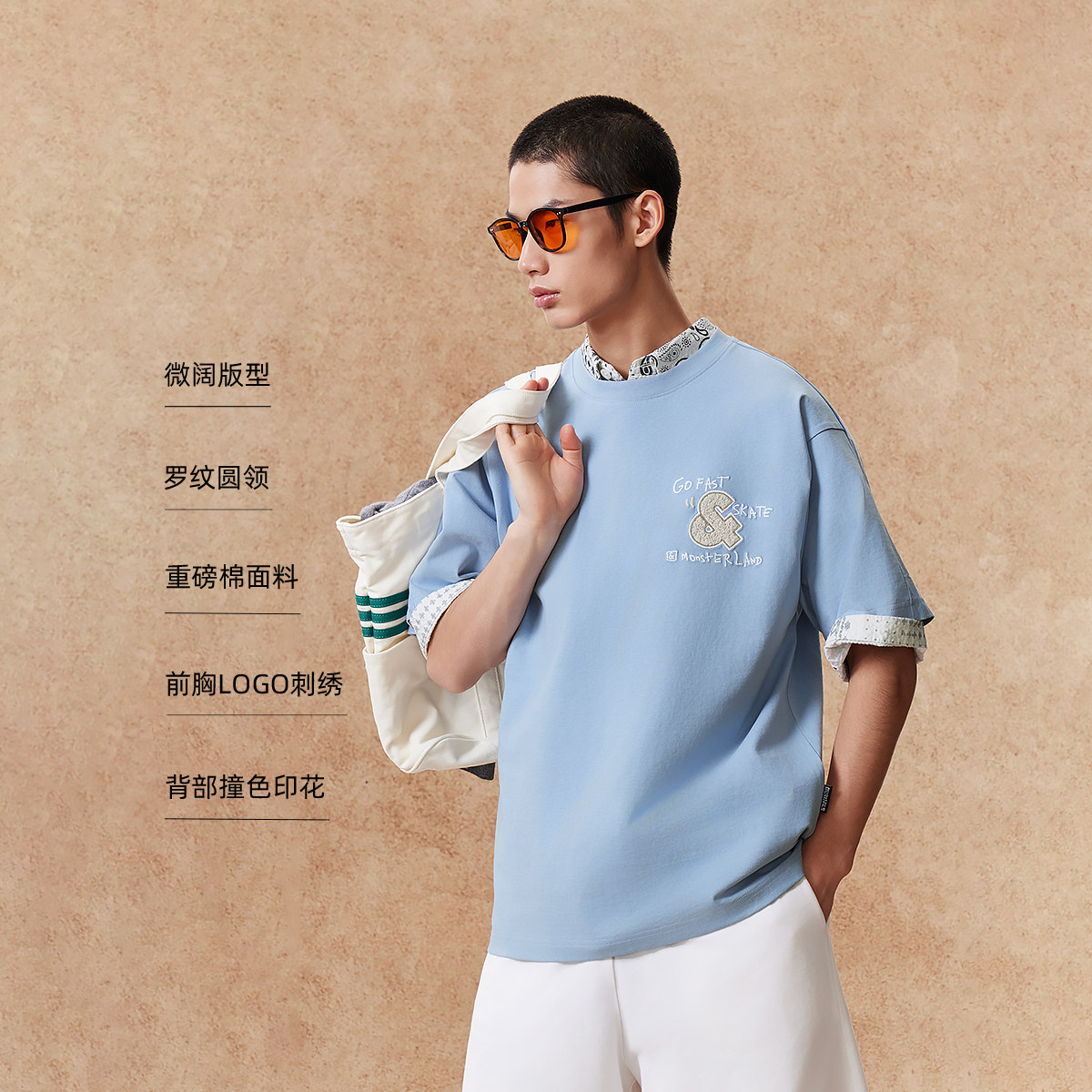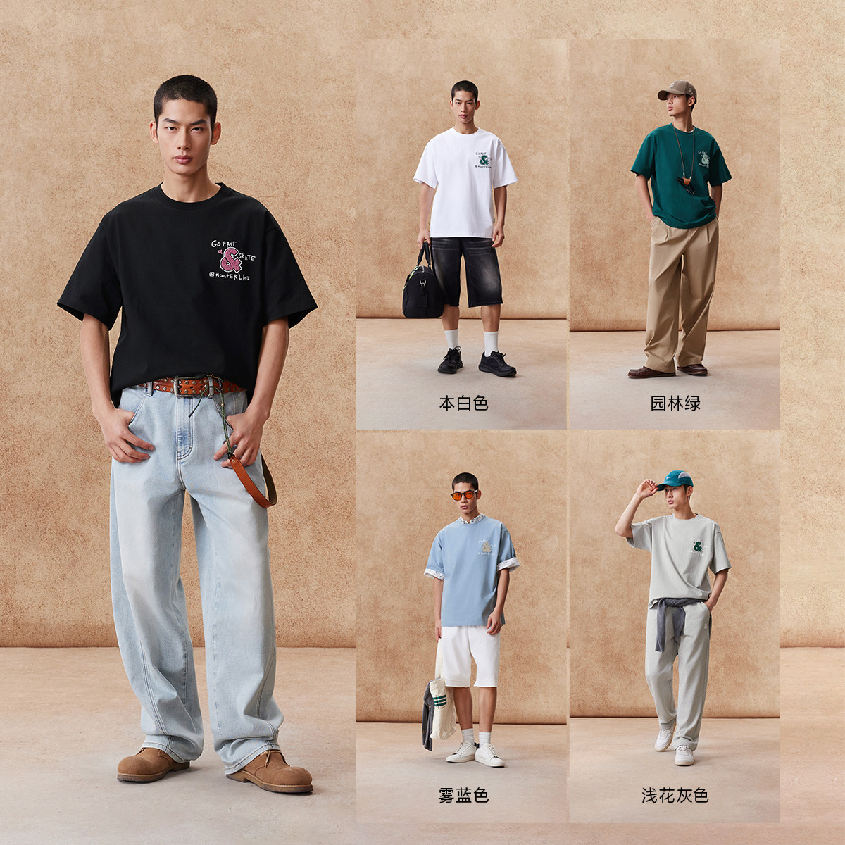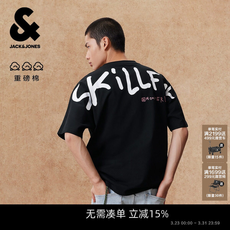 【重磅棉】杰克琼斯男装2026年春夏新款刺绣男士短袖T恤宽松印花