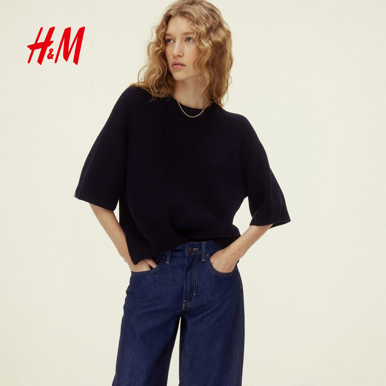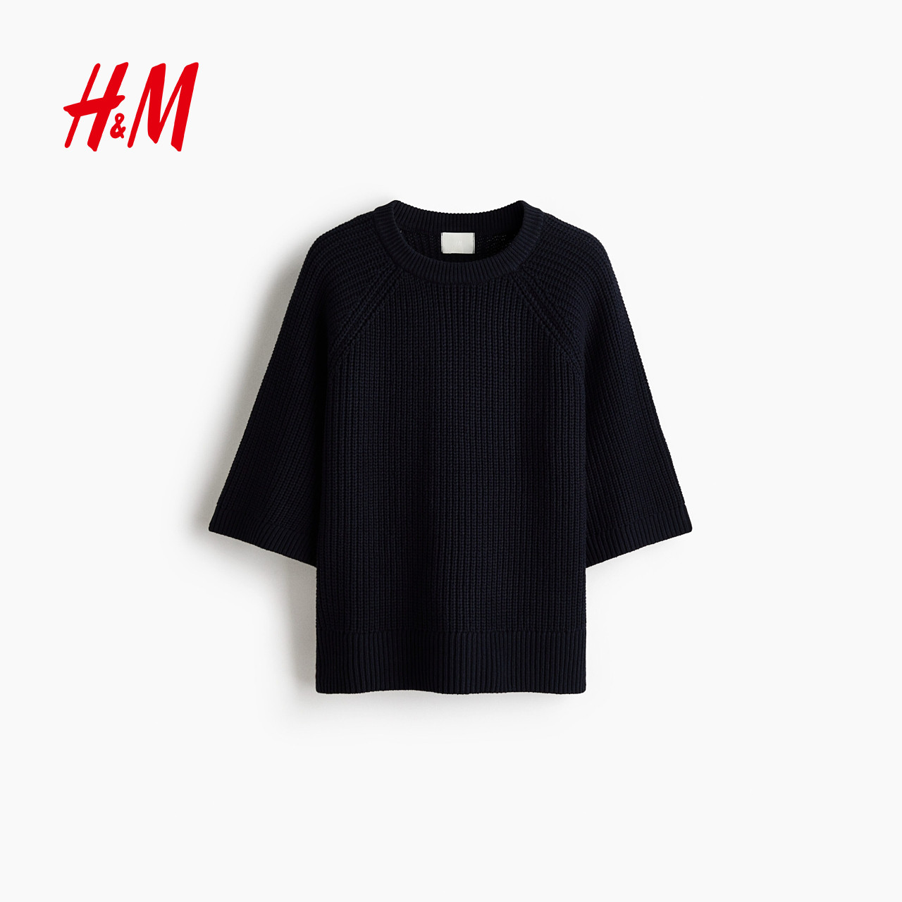 HM女装毛针织衫2026春季罗纹针织上衣内搭新款廓形针织衫1317185