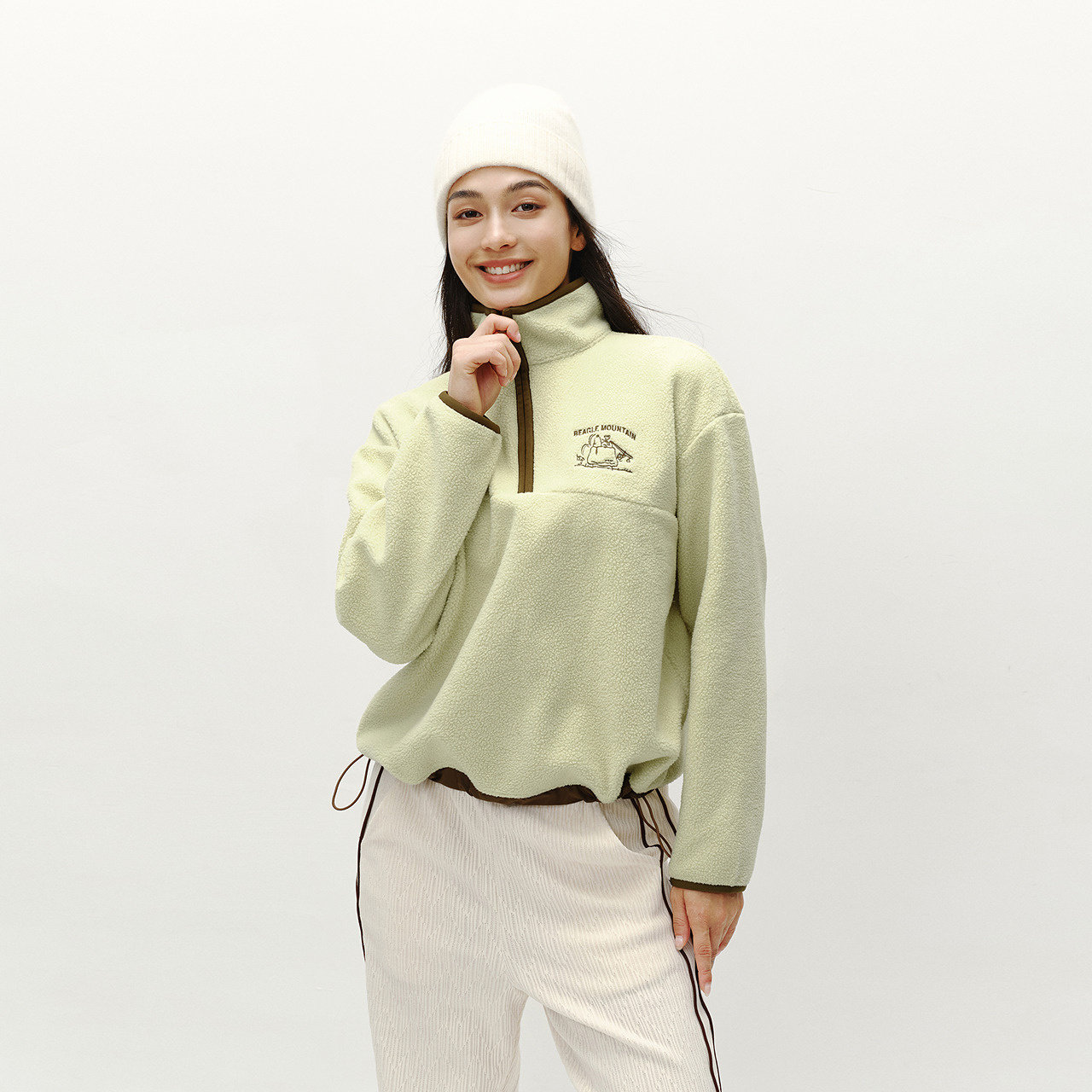森马史努比系列卫衣女设计感摇粒绒保暖冬宽松半拉链立领刺绣上衣