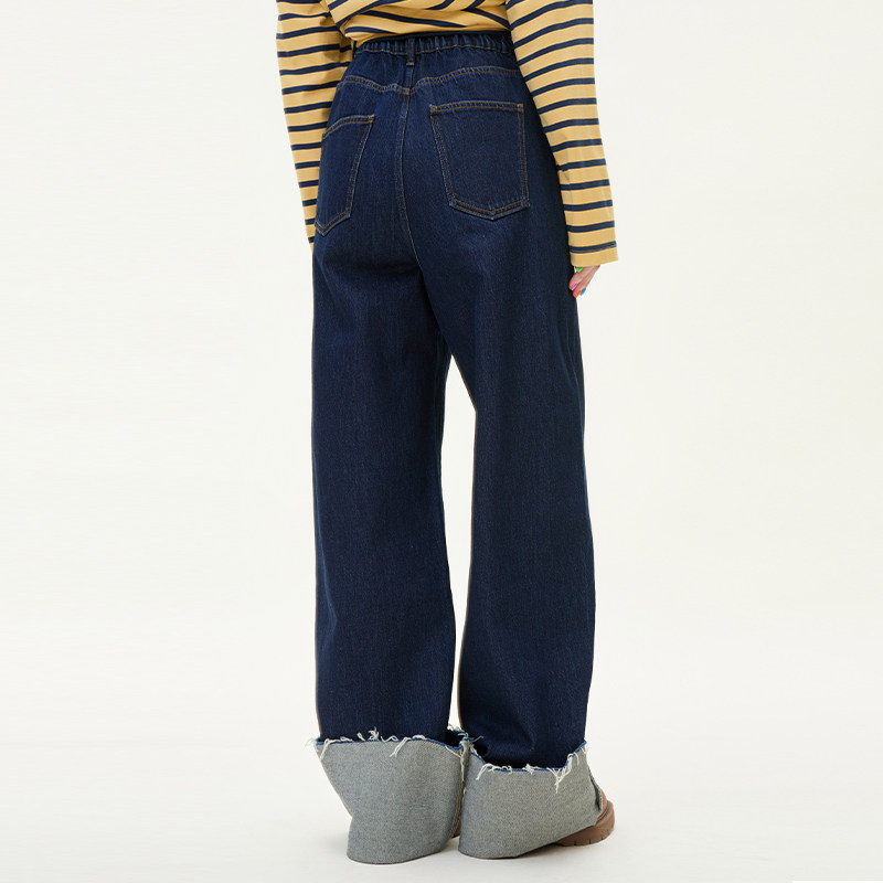 四面弹丹宁色牛仔阔腿裤25年新款宽松显瘦牛仔长裤89173