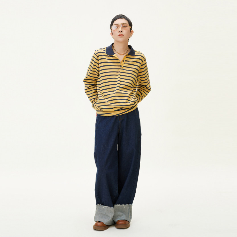 【100棉】GOLDEN BARRY25冬经典复古丹宁蓝翻边撞色牛仔裤501144
