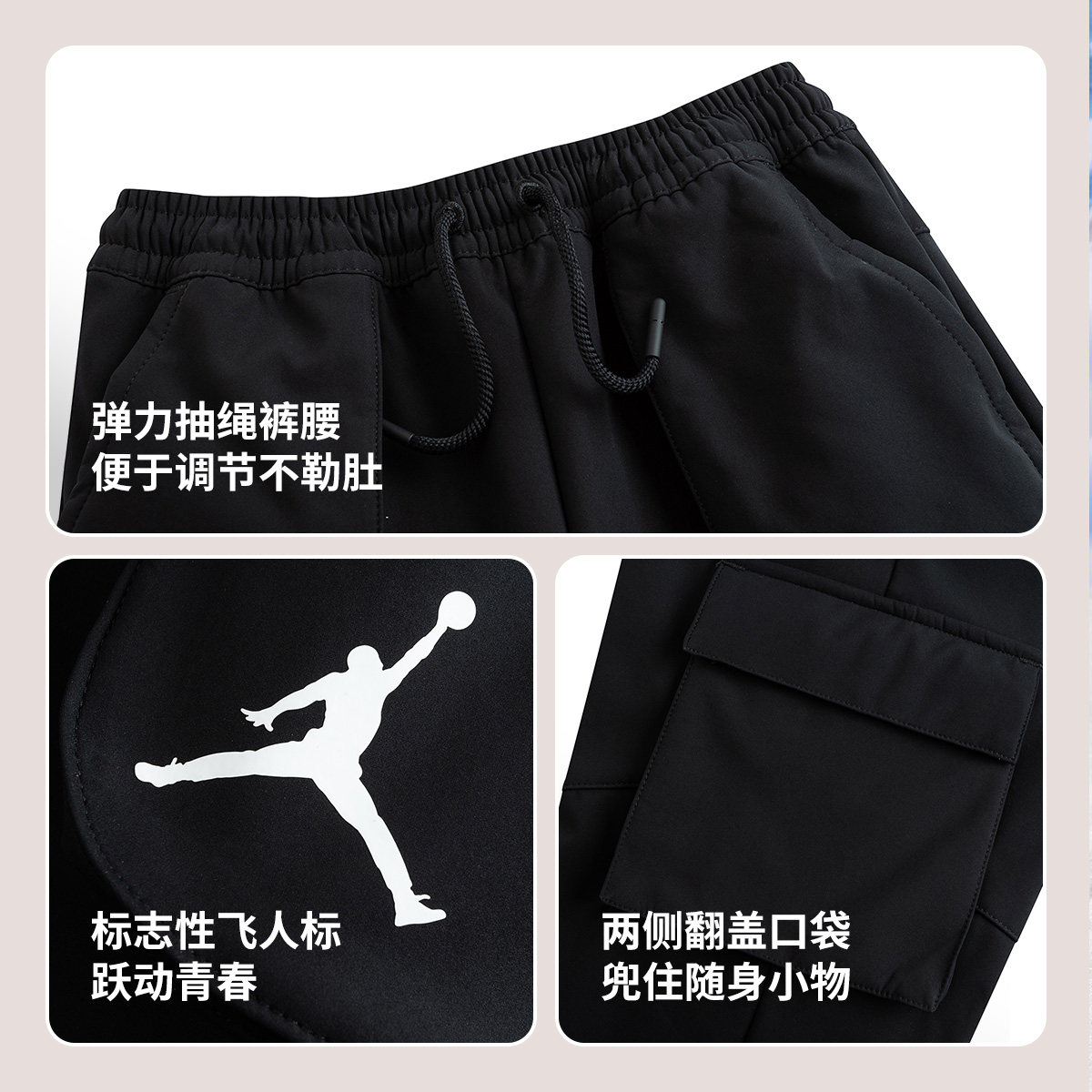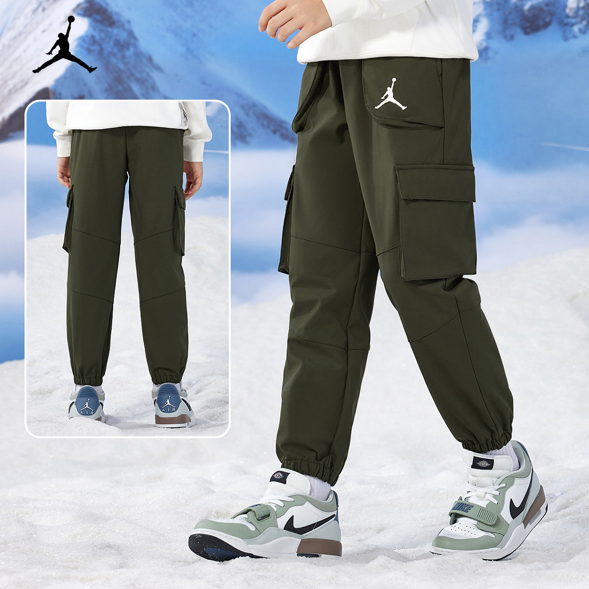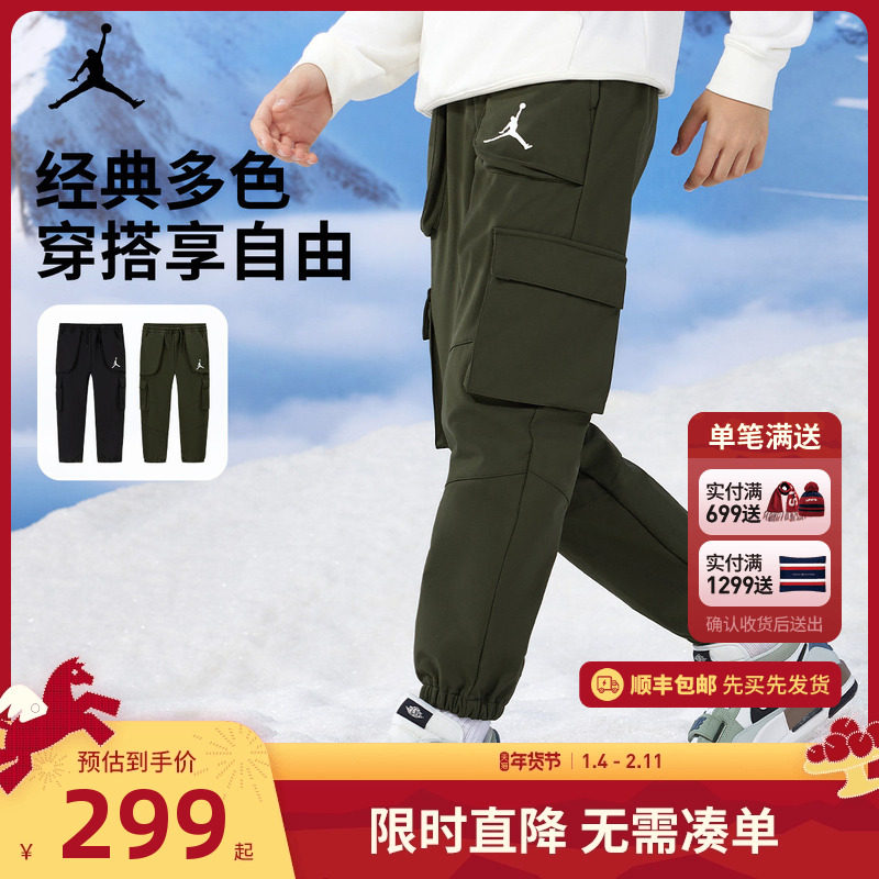 Jordan儿童装男童加绒保暖长裤冬季中大童休闲卫裤工装裤女童冬装