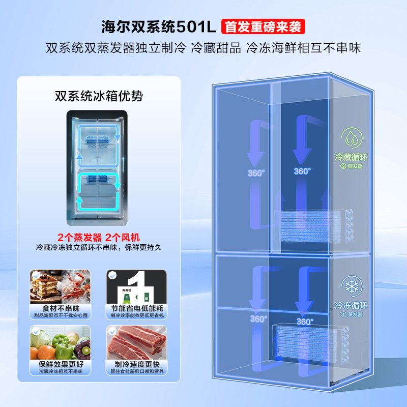 【双系统新品】海尔小红花501L法式多门风冷无霜家用节能电冰箱