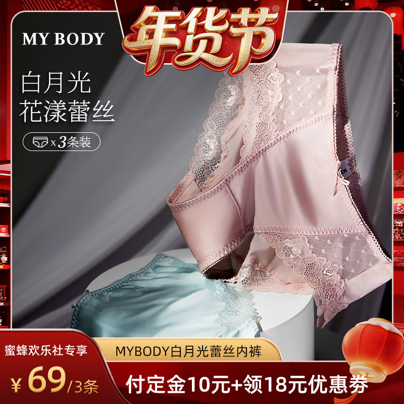 【爆品年货节】白月光3条MYBODY商场同款蕾丝内裤桑蚕丝抗菌底档