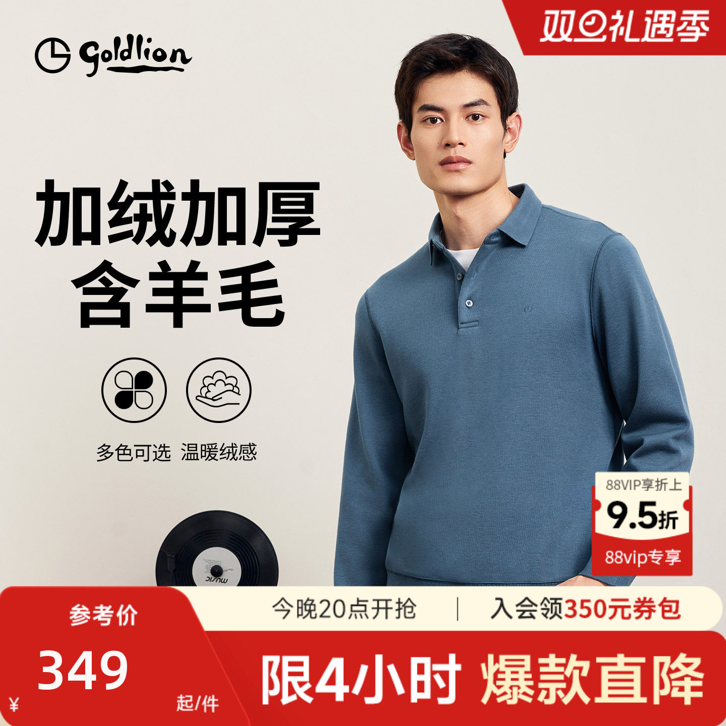 【加绒加厚】金利来秋冬含羊毛长袖T恤保暖商务休闲POLO衫上衣男