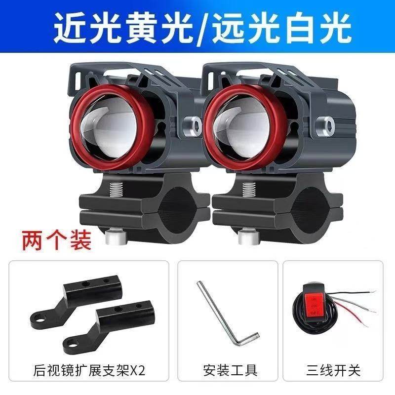 摩托车射灯黄白光led大灯电瓶车灯强光超亮改装铺路远近光灯