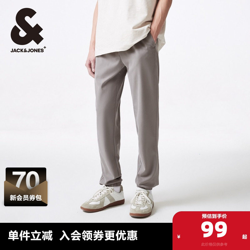 杰克琼斯春季合体松紧抽绳腰头灰绿色休闲长裤束脚裤男裤男装