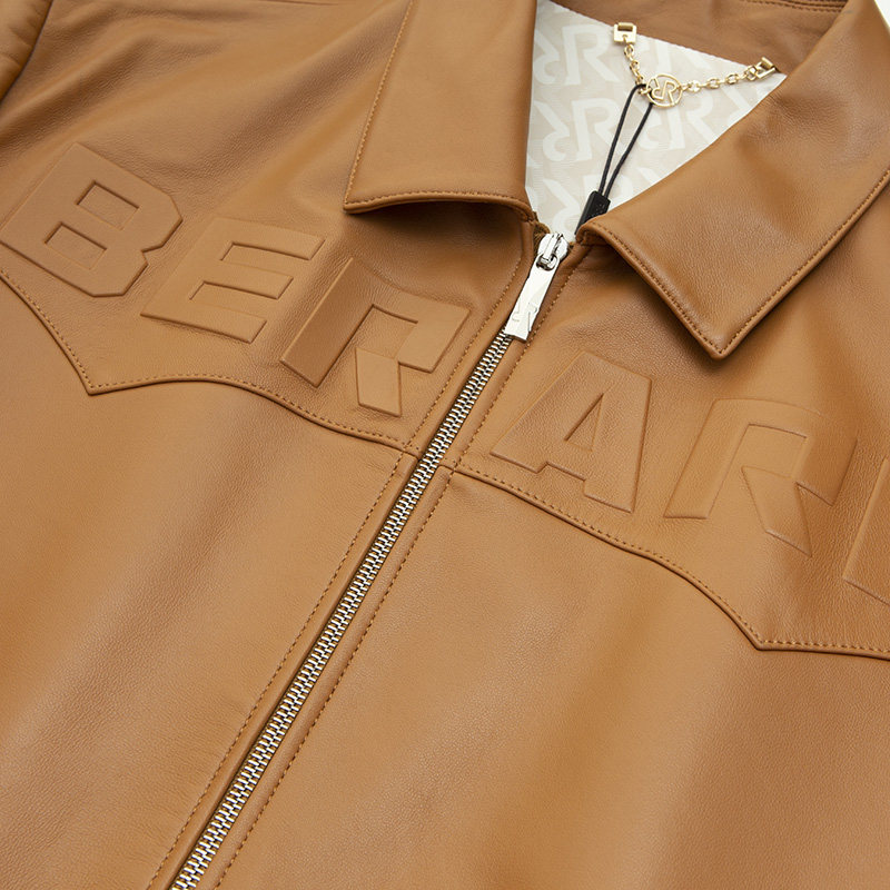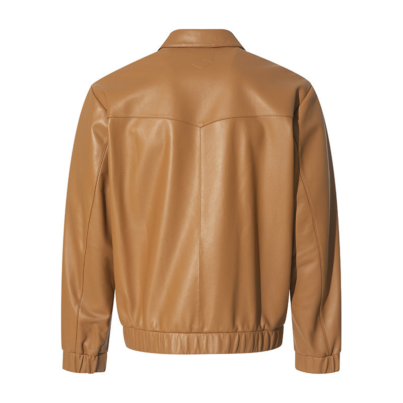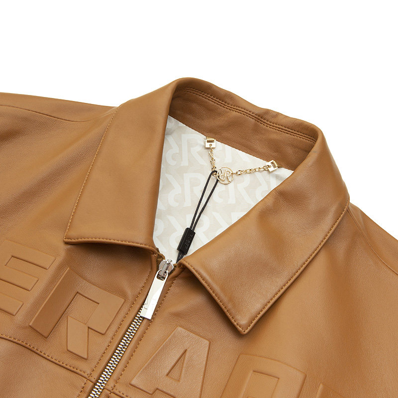 RARE威雅男装 秋冬新款男士外套前胸字母压印棕黄色翻领皮衣