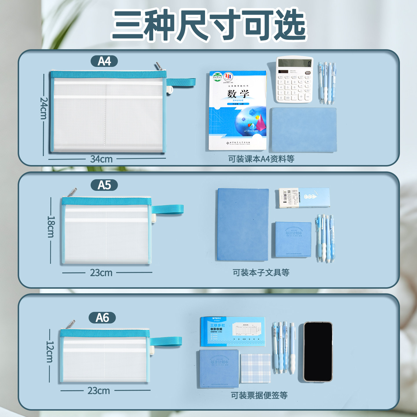 A4文件袋科目分类袋书袋透明文件收纳袋小学生初中生学科分类袋拉链式档案塑料防水办公学生专用袋试卷收纳袋