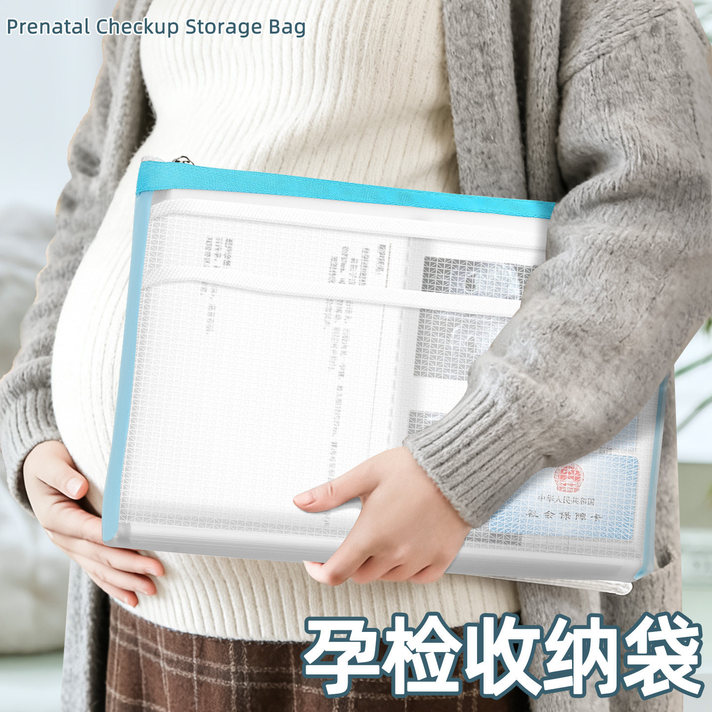 亲肤孕妇产检文件袋拉链式孕检收纳包防水家庭证件收纳袋多层档案袋a4疫苗本手提包孕期报告单透明袋子小号A5