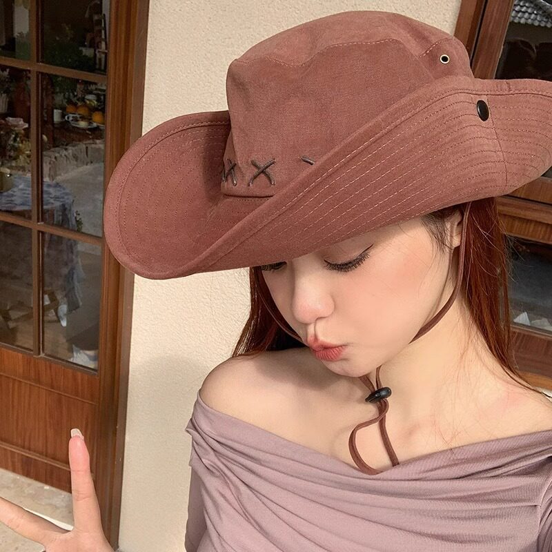西部牛仔渔夫帽子女夏季登山防晒帽