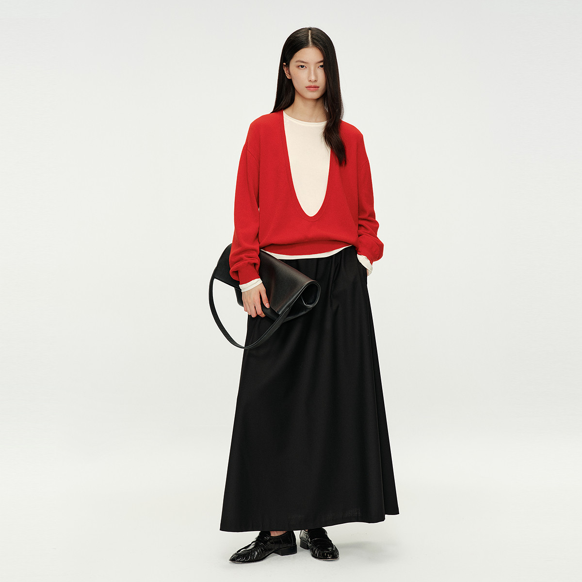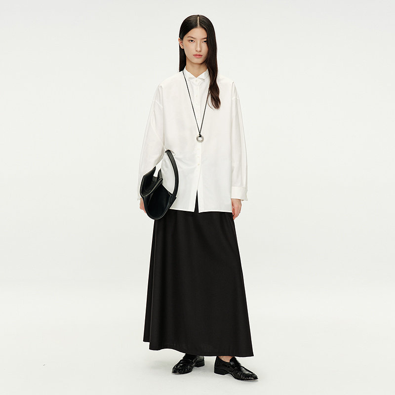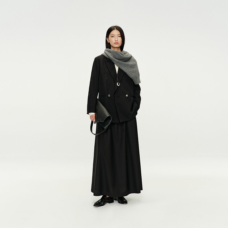 MESUX米岫25秋羊毛混纺长裙挺括大摆A字小黑裙半身裙伞裙MNFUS403