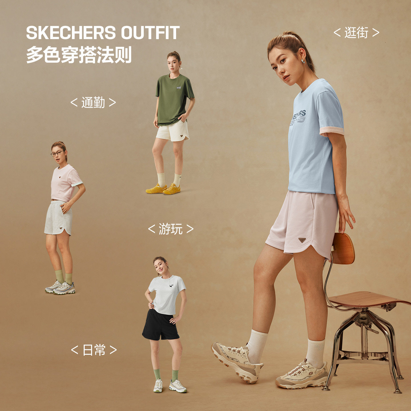 斯凯奇女款针织短裤2026新款纯色舒适百搭宽松瑜伽健身运动短裤