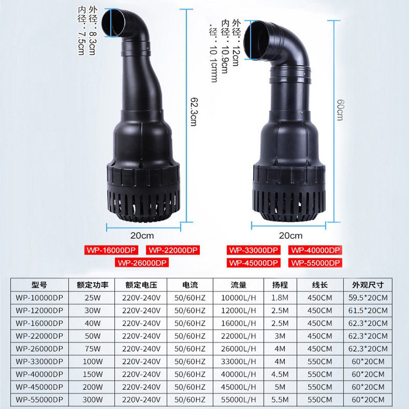 松宝鱼池锦鲤池塘过滤循环泵大功率大流量潜水抽水泵水池烟斗泵