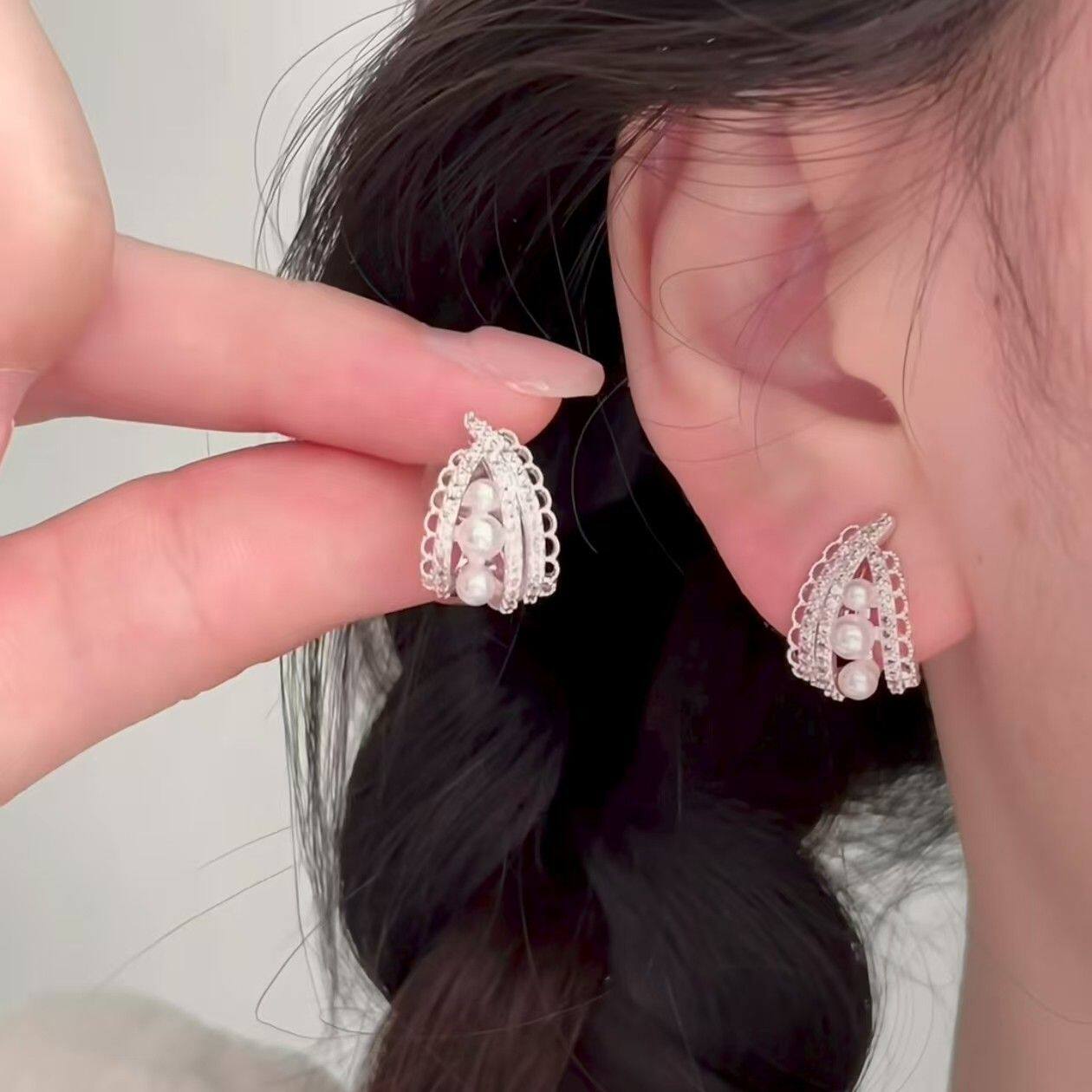 精致复古法式蕾丝珍珠无耳洞耳夹女轻奢高级感气质耳饰无痛耳夹
