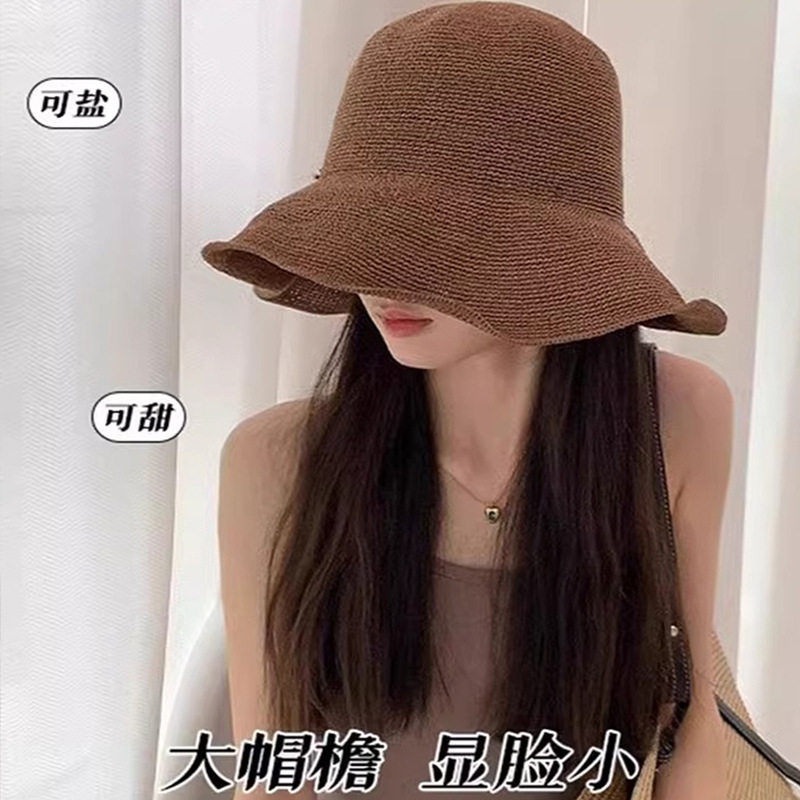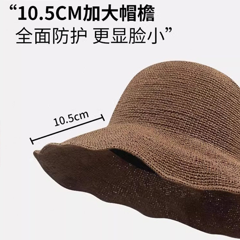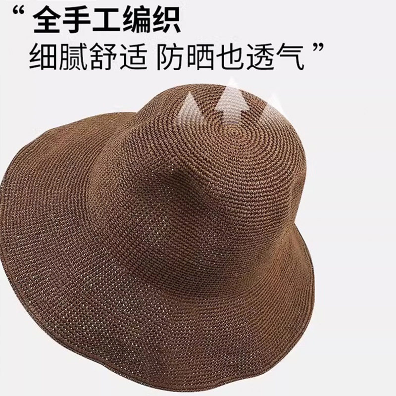 日系手工编织遮阳帽春夏季薄款透气草帽子女款海边度假渔夫帽大檐