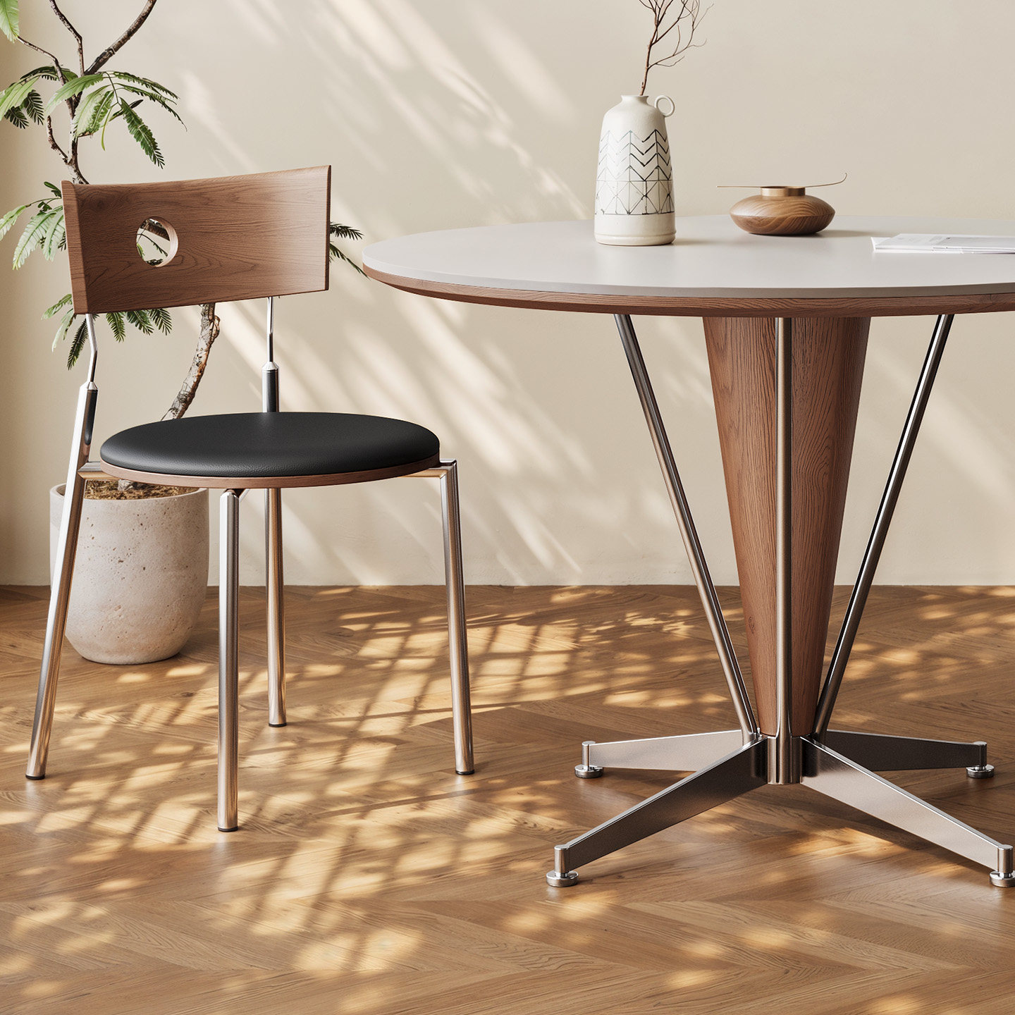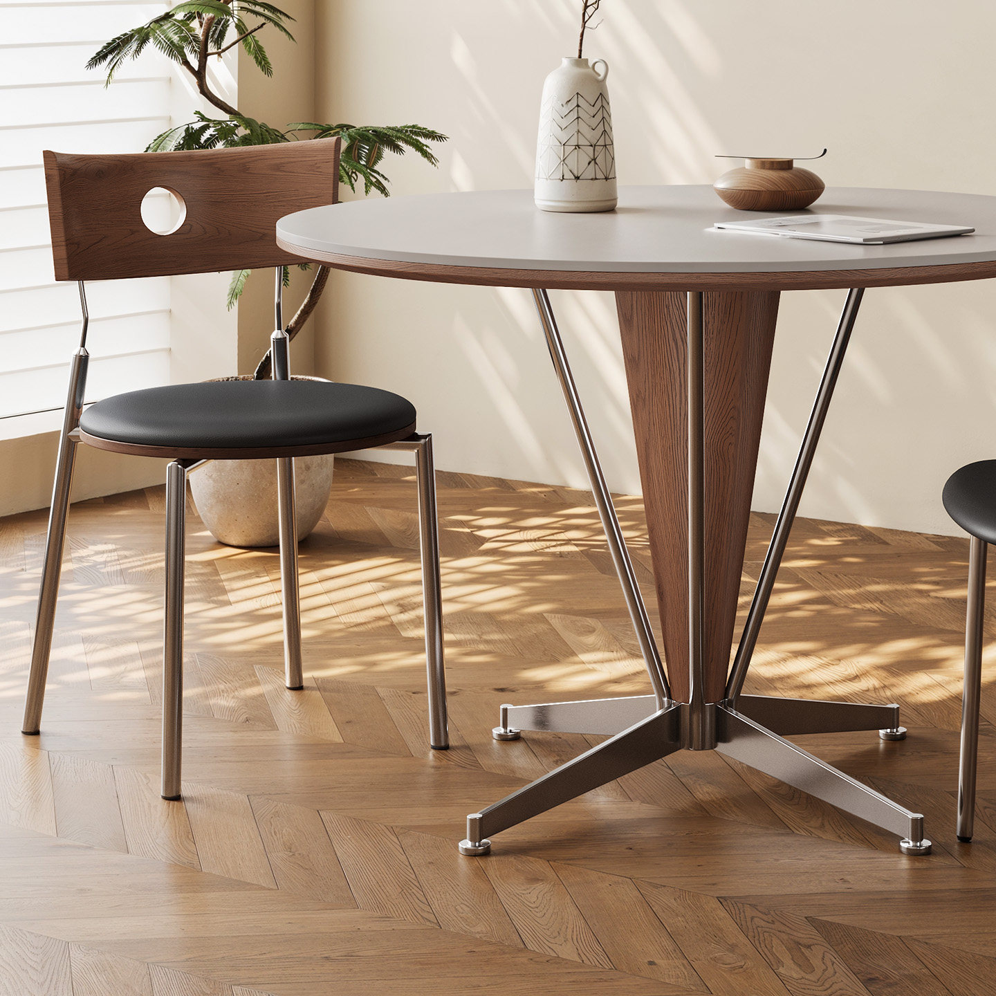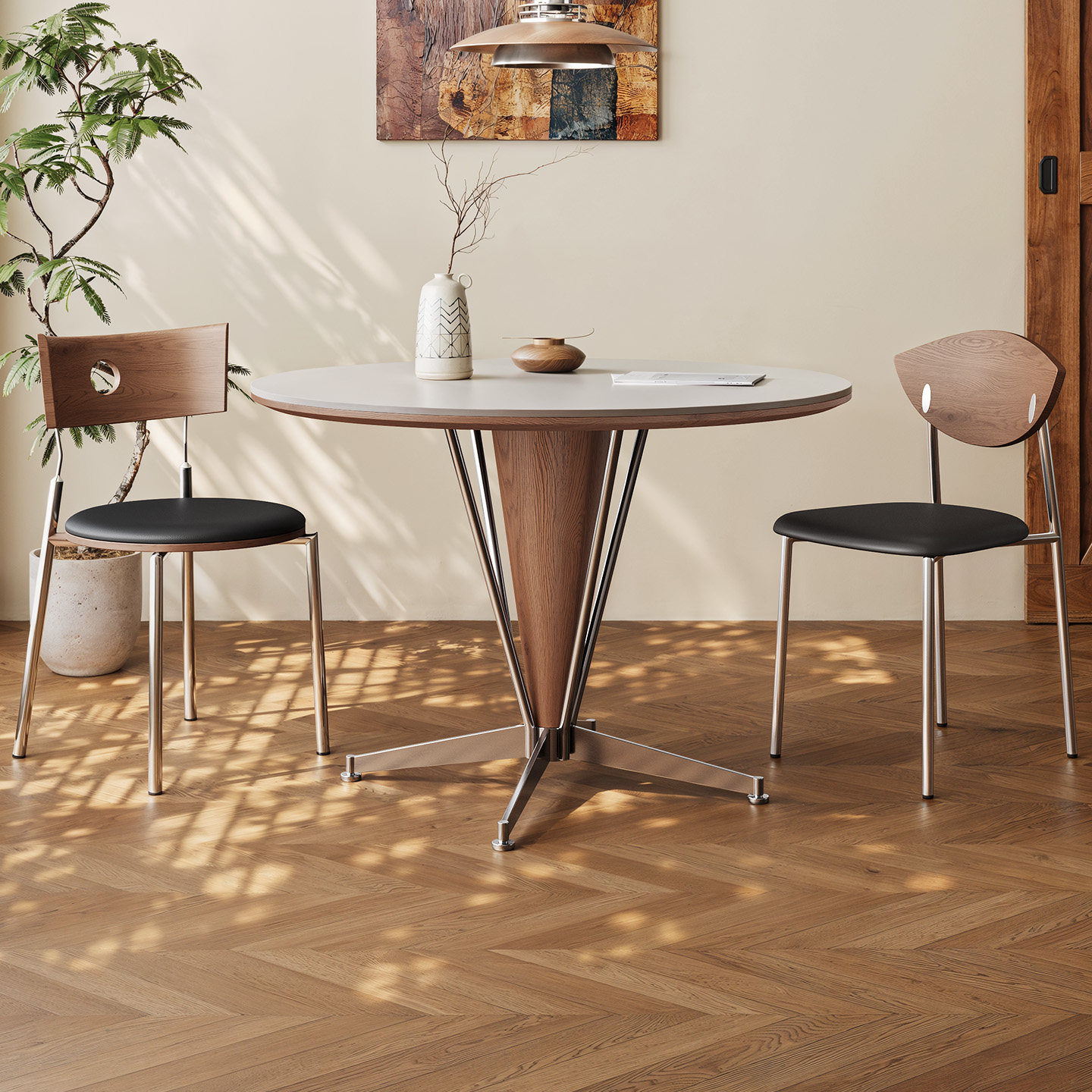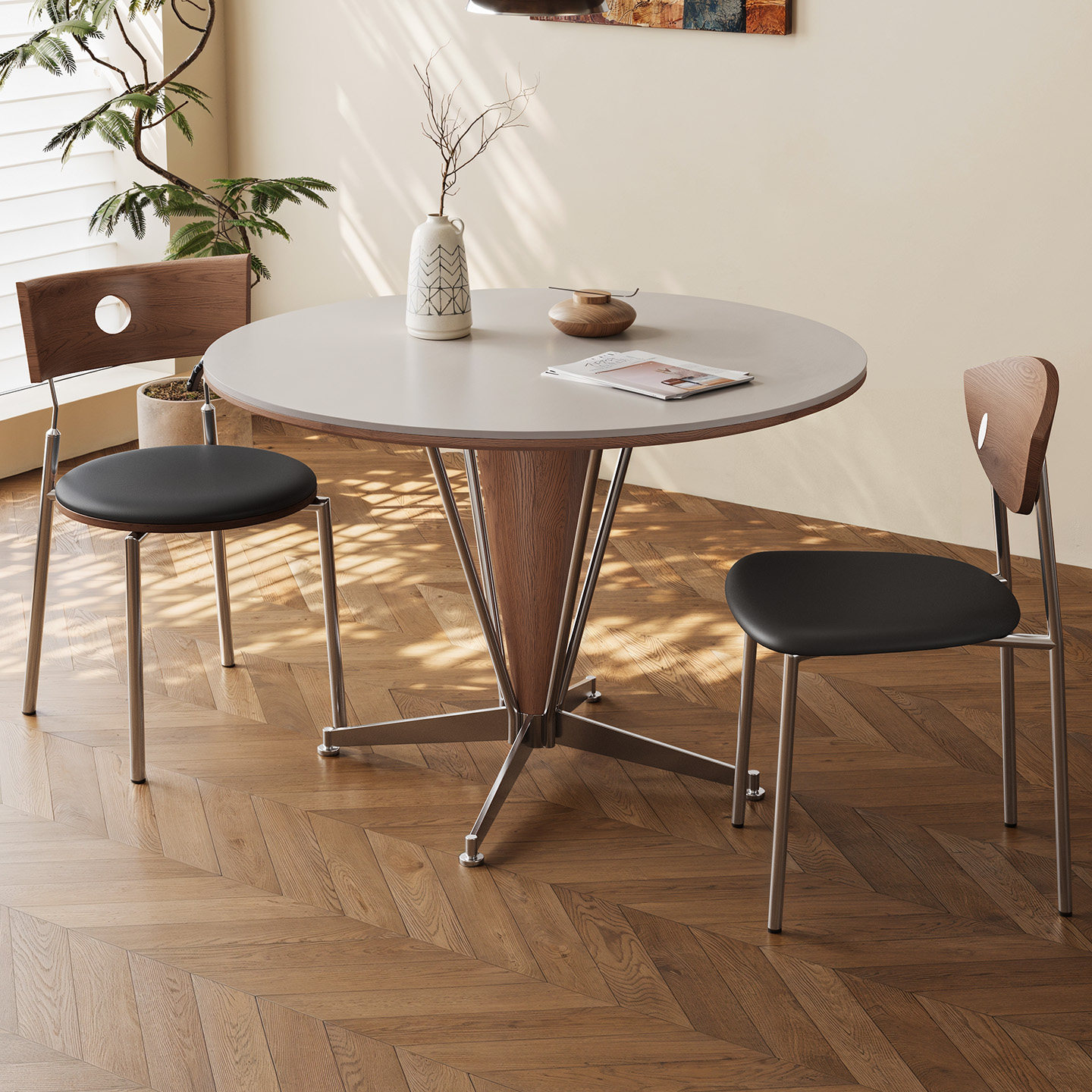 奥古斯特 包豪斯餐桌家用小户型2026新款中古风实木岩板餐桌圆形