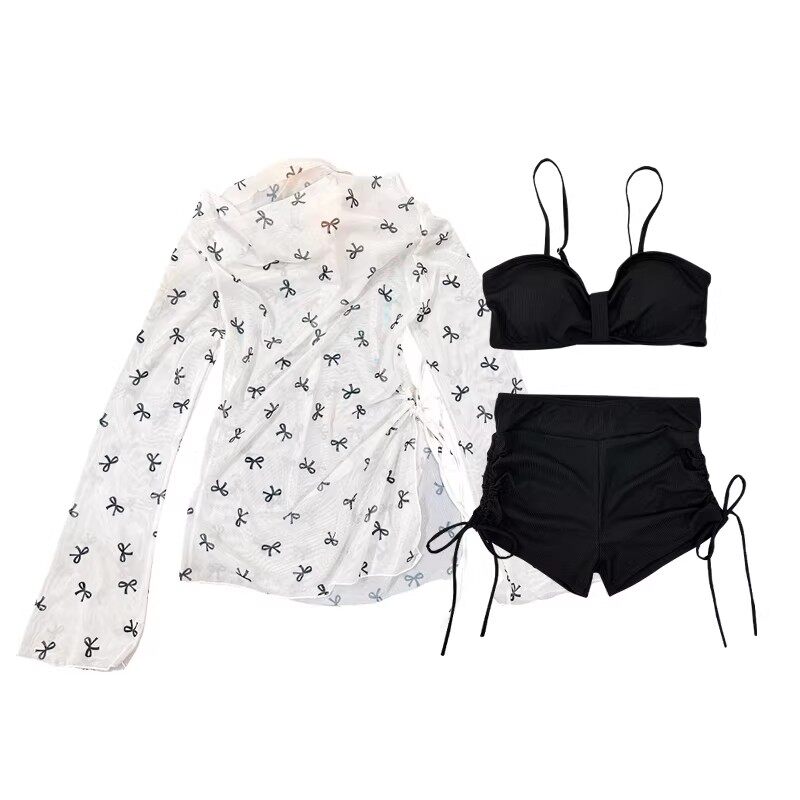 AYSTUDIO泳衣女碎花比基尼纯欲风长袖罩衫防晒小胸聚拢显瘦泡温泉
