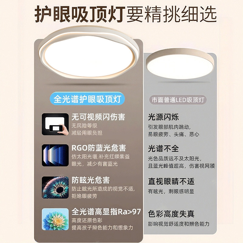 全光谱护眼吸顶灯卧室灯主卧2025年新款中山灯具现代简约房间书房