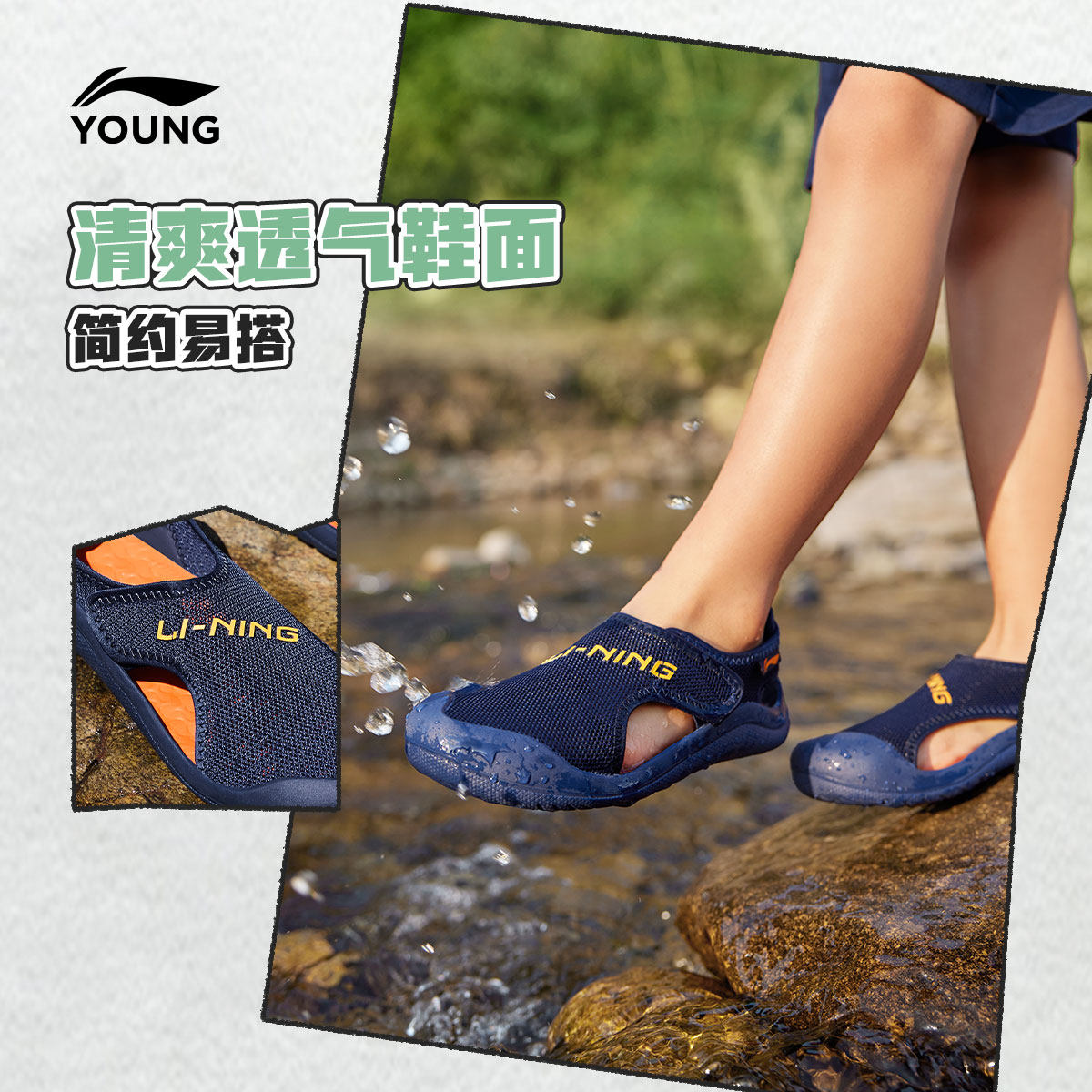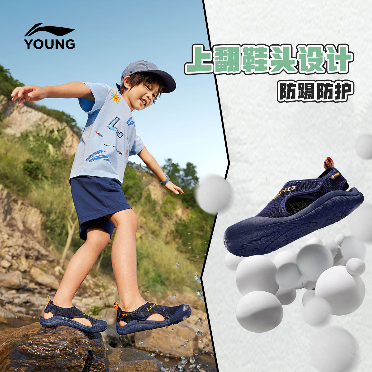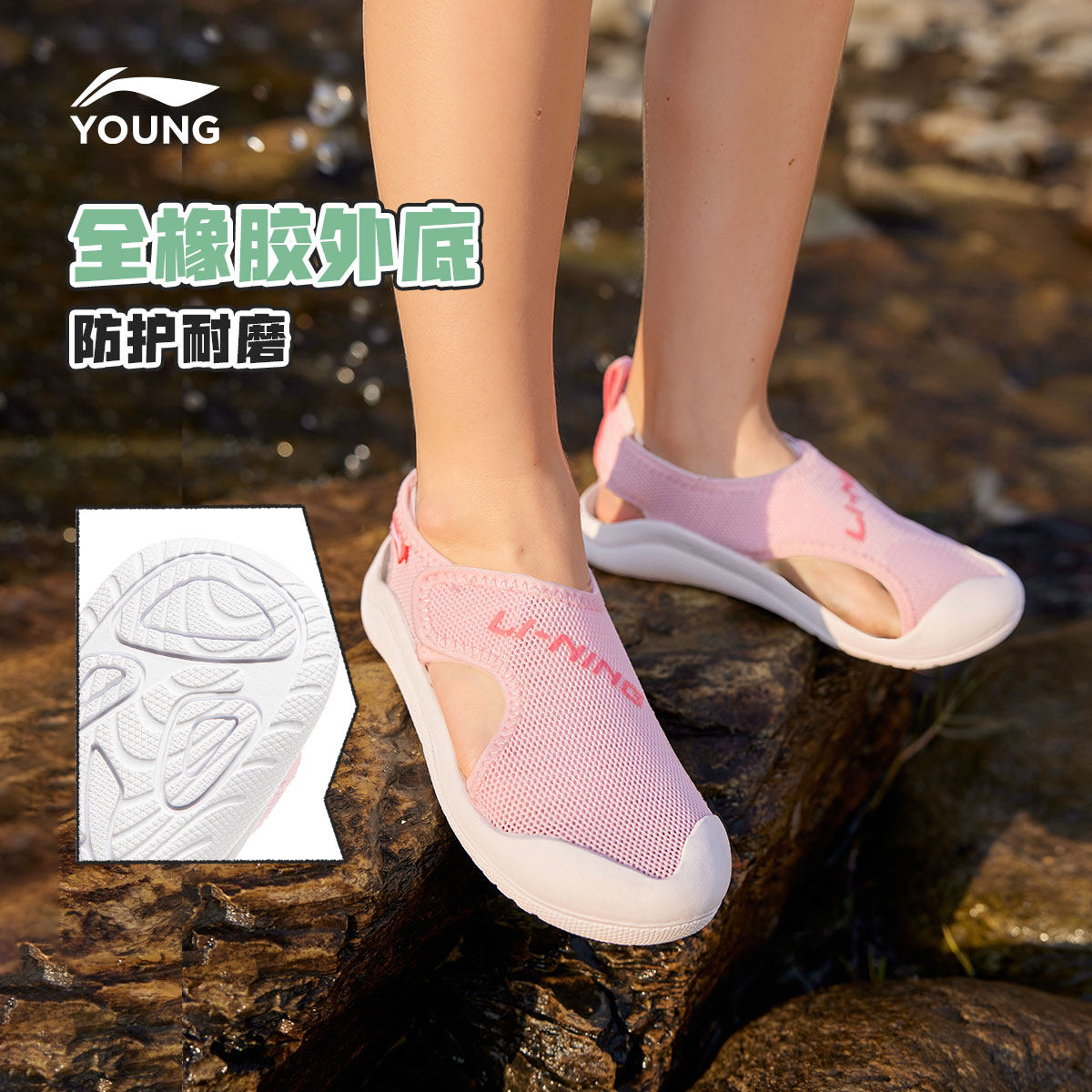 李宁童鞋凉鞋男女小童新款圆头鞋子夏季透气运动低帮童鞋