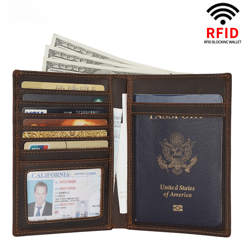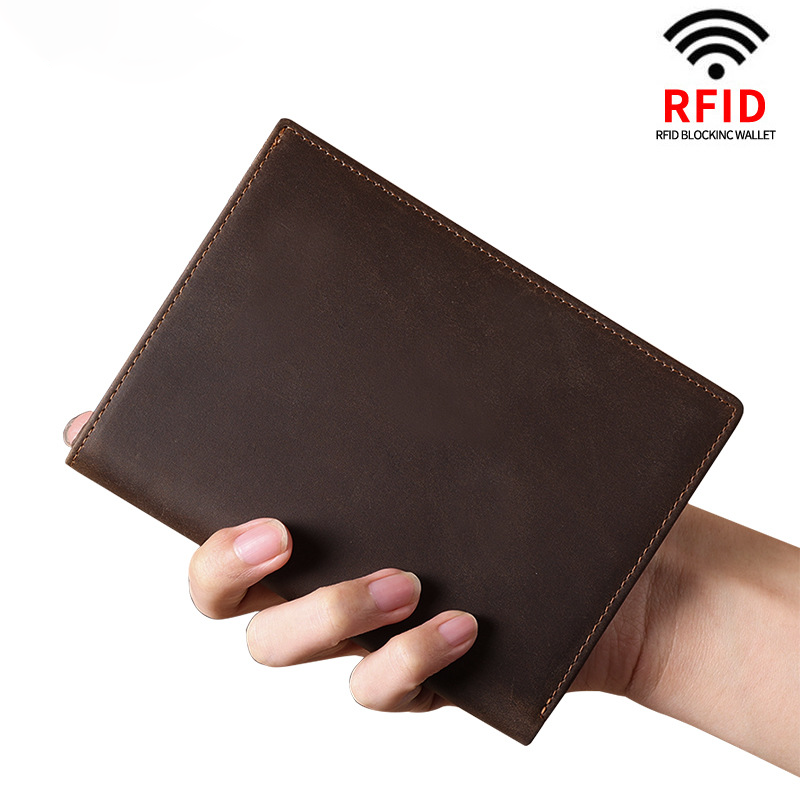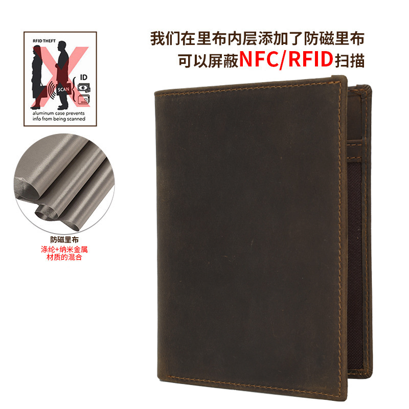新款欧美跨境疯马皮RFID防磁轻薄真皮证件包钱包卡包护照本包