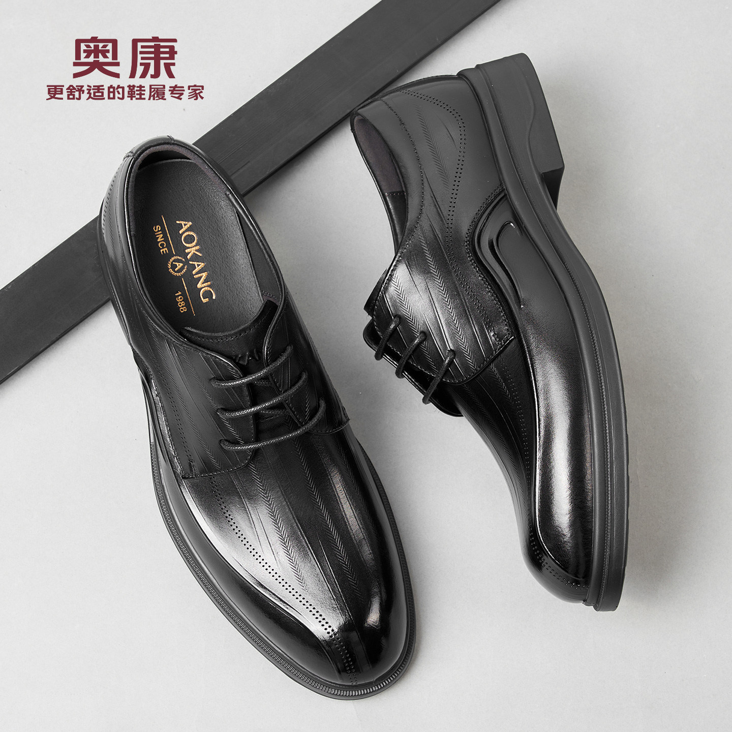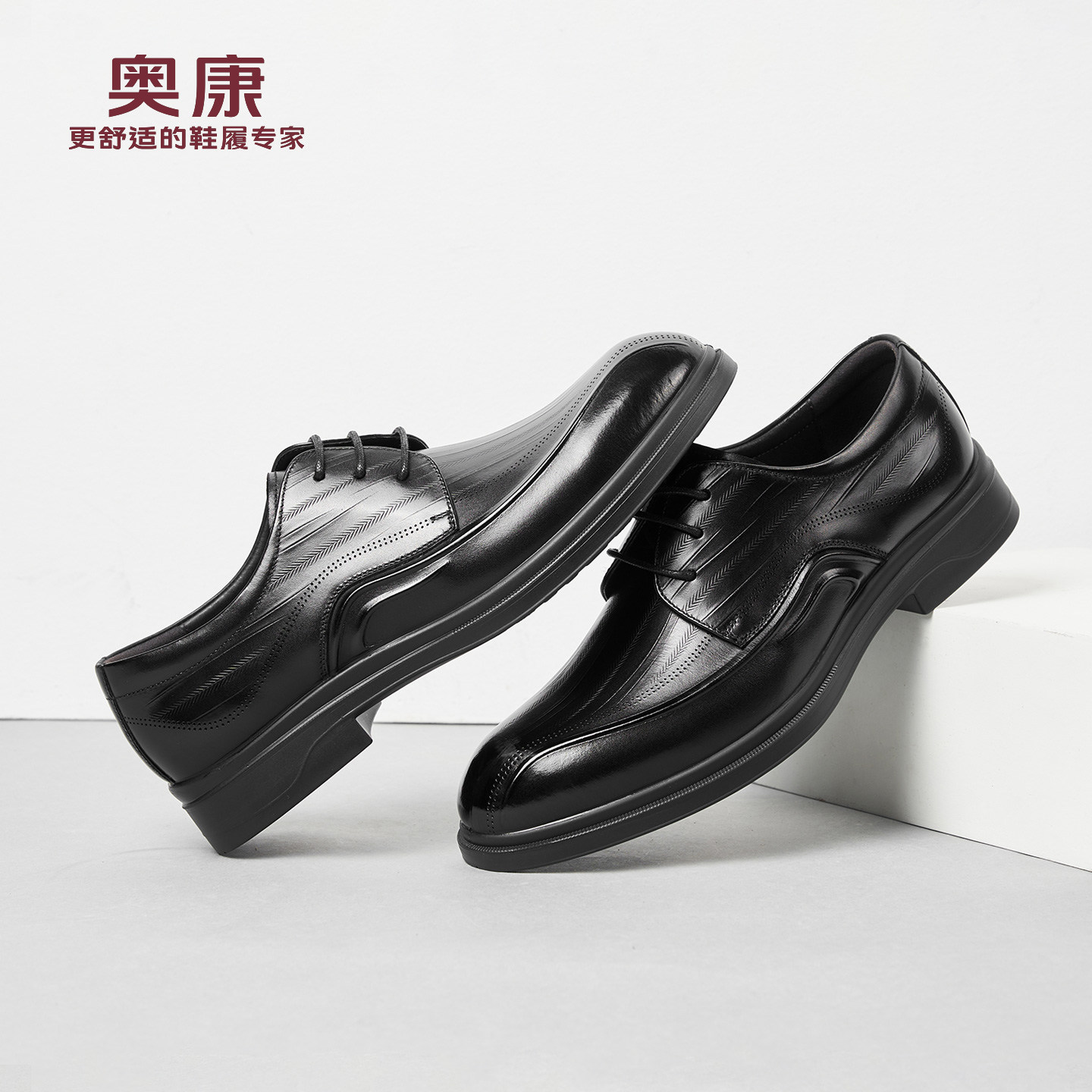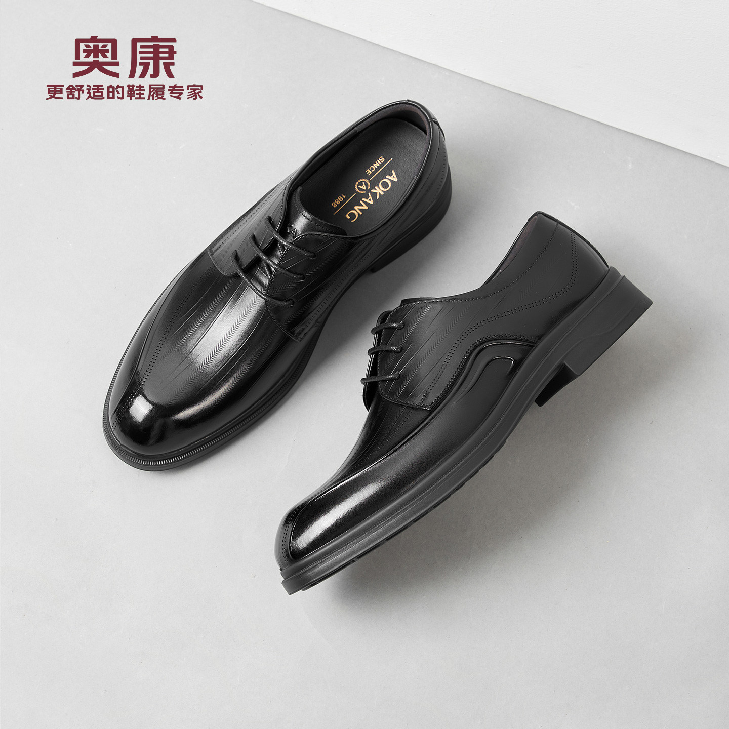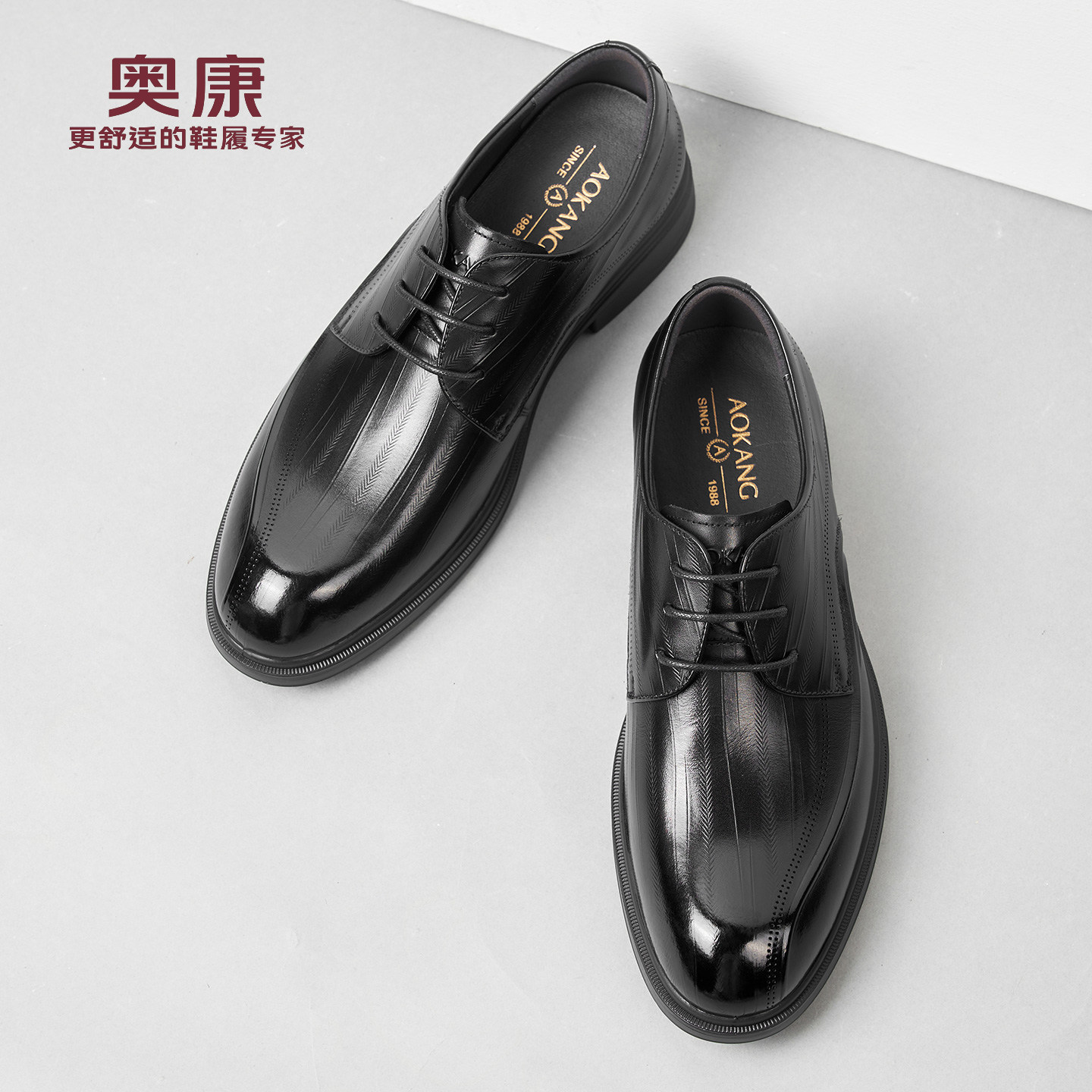 奥康男鞋春秋季商务正装皮鞋牛皮办公室真皮系带男士工作大码皮鞋