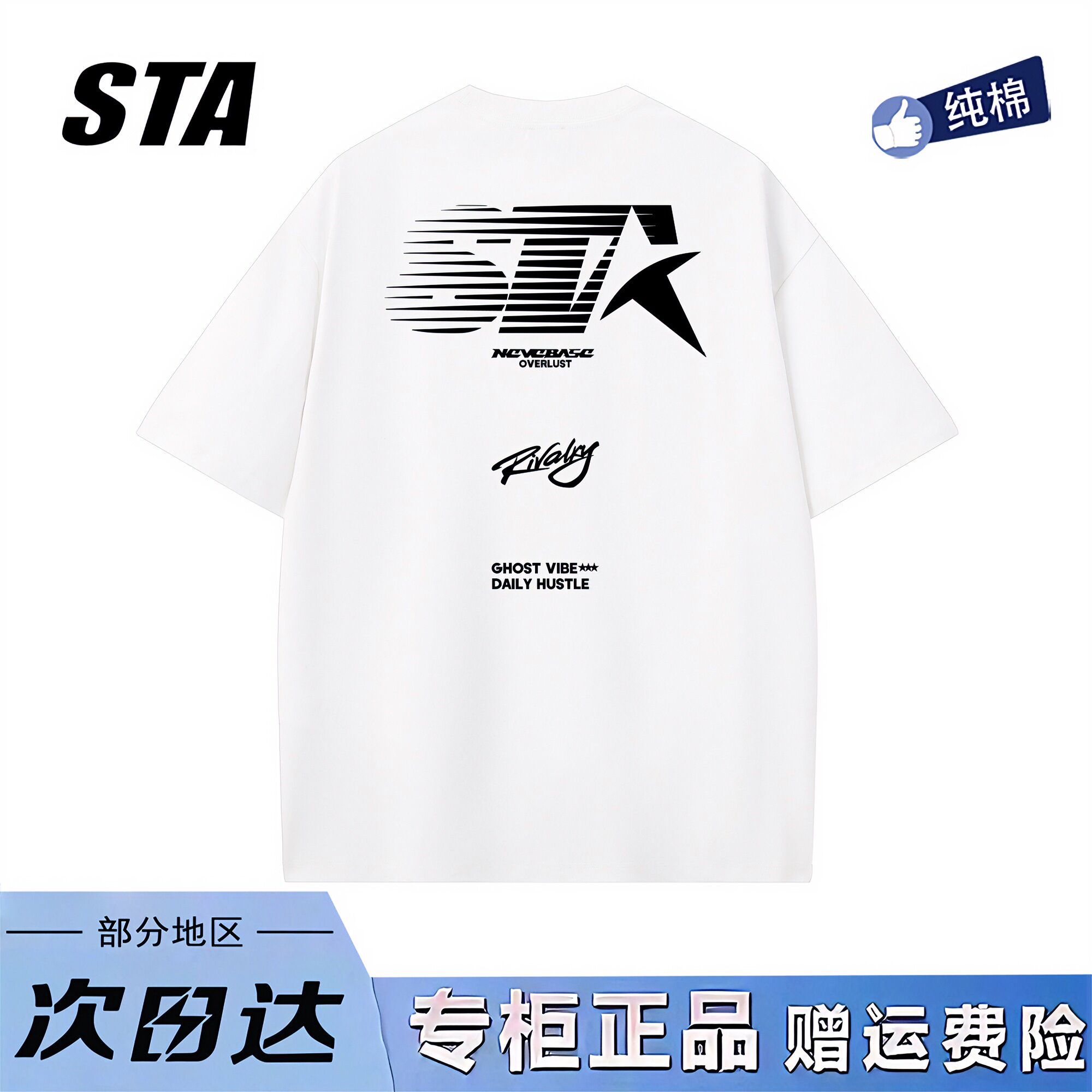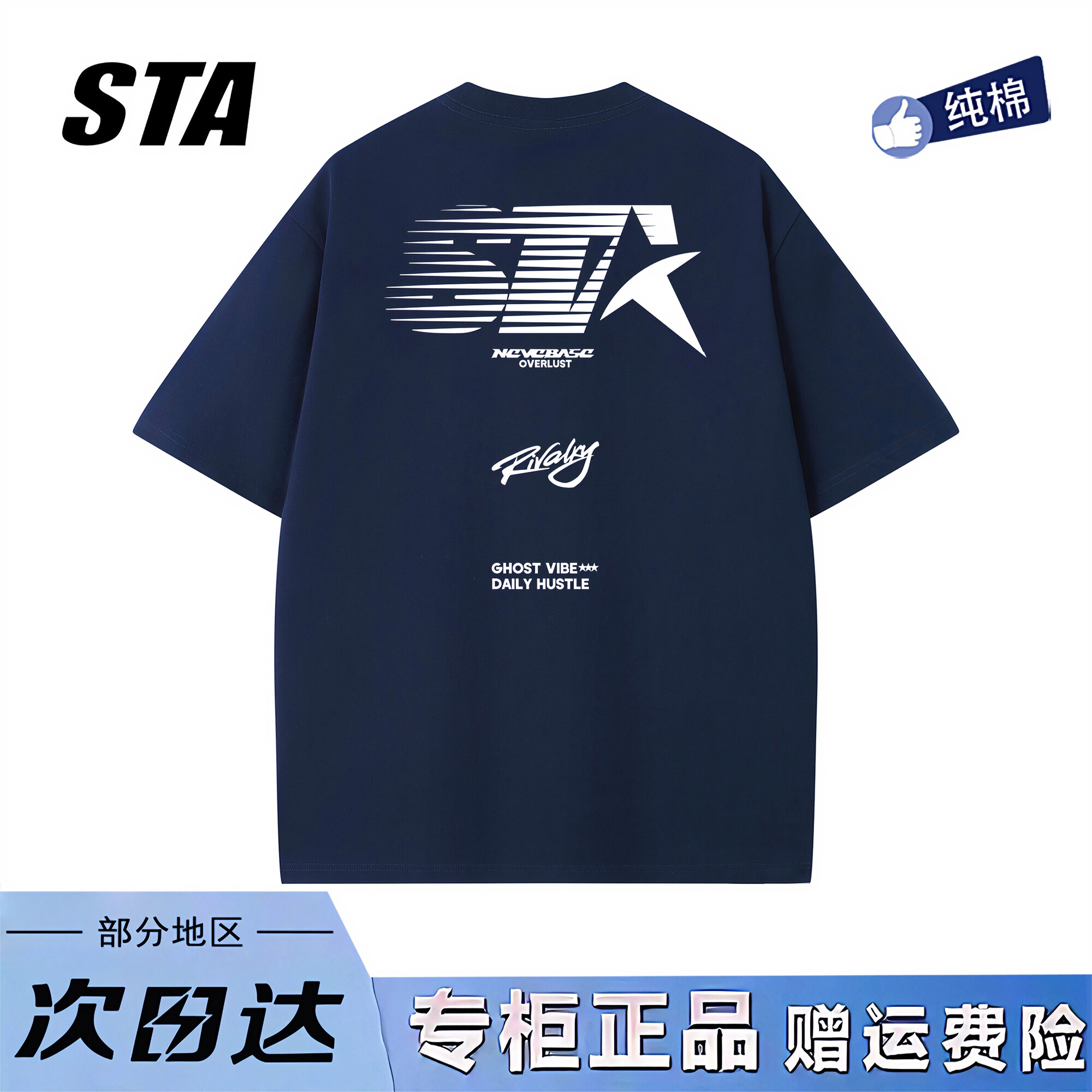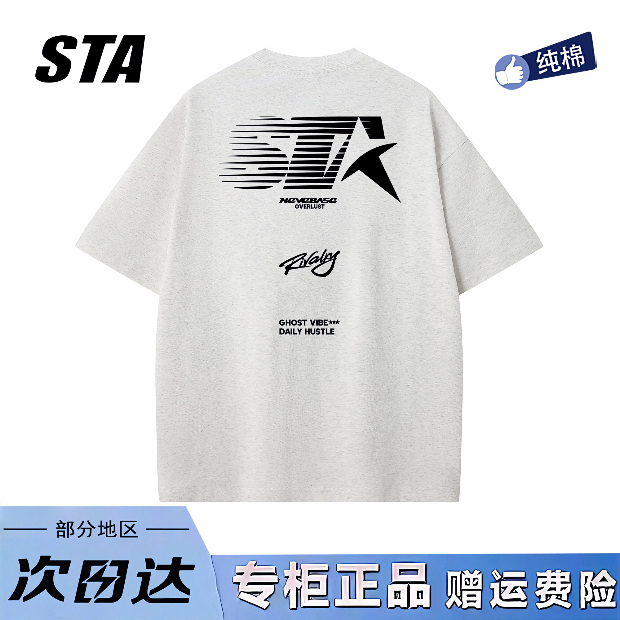 STA旗舰店美式潮牌字母印花短袖男女夏季复古高街纯棉情侣黑色t恤