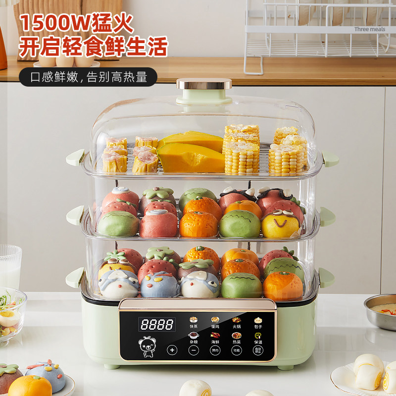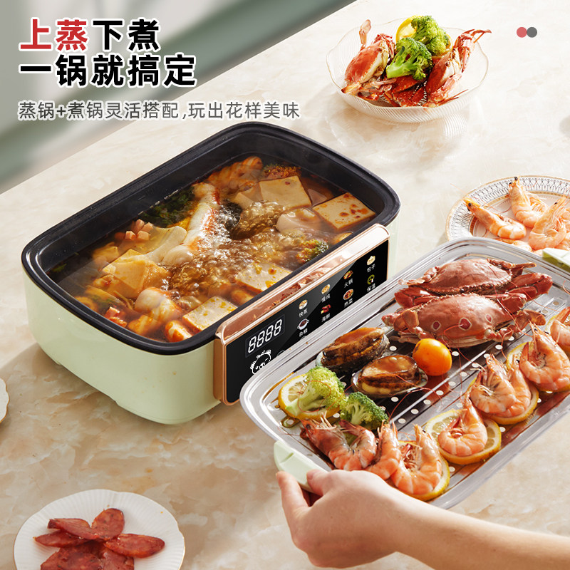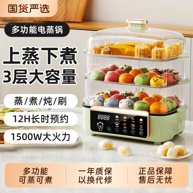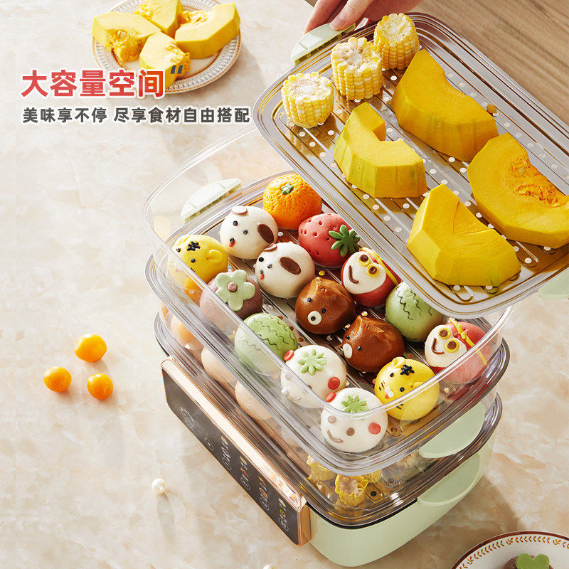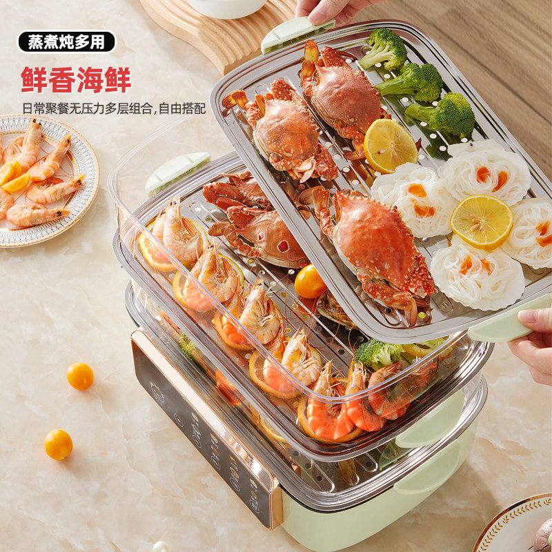 小贝熊电蒸锅多功能电火锅家用大容量三层蒸煮一体不锈钢多层预约