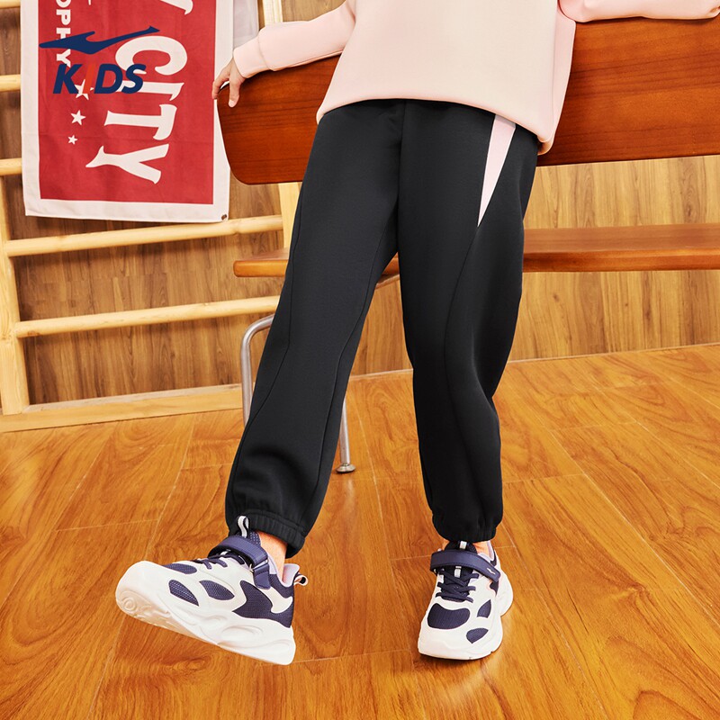 鸿星尔克童装女童春季裤子儿童针织长裤百搭运动休闲裤弹力束脚裤