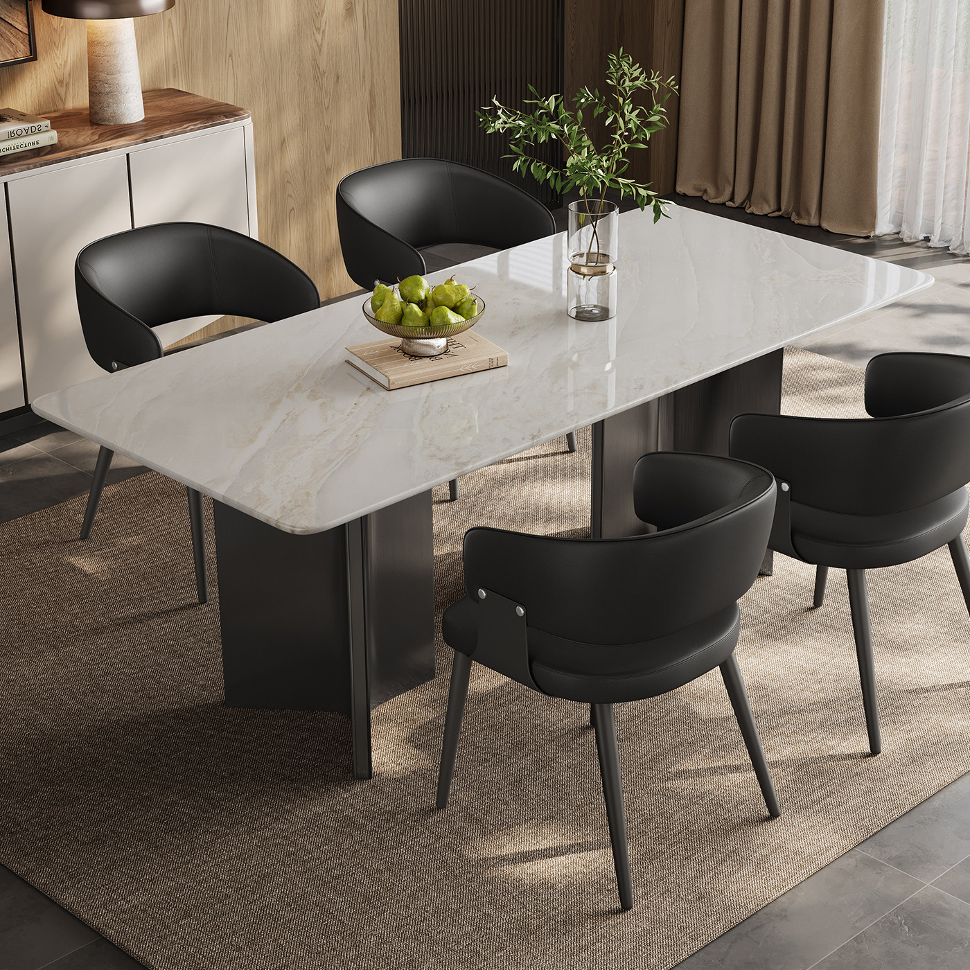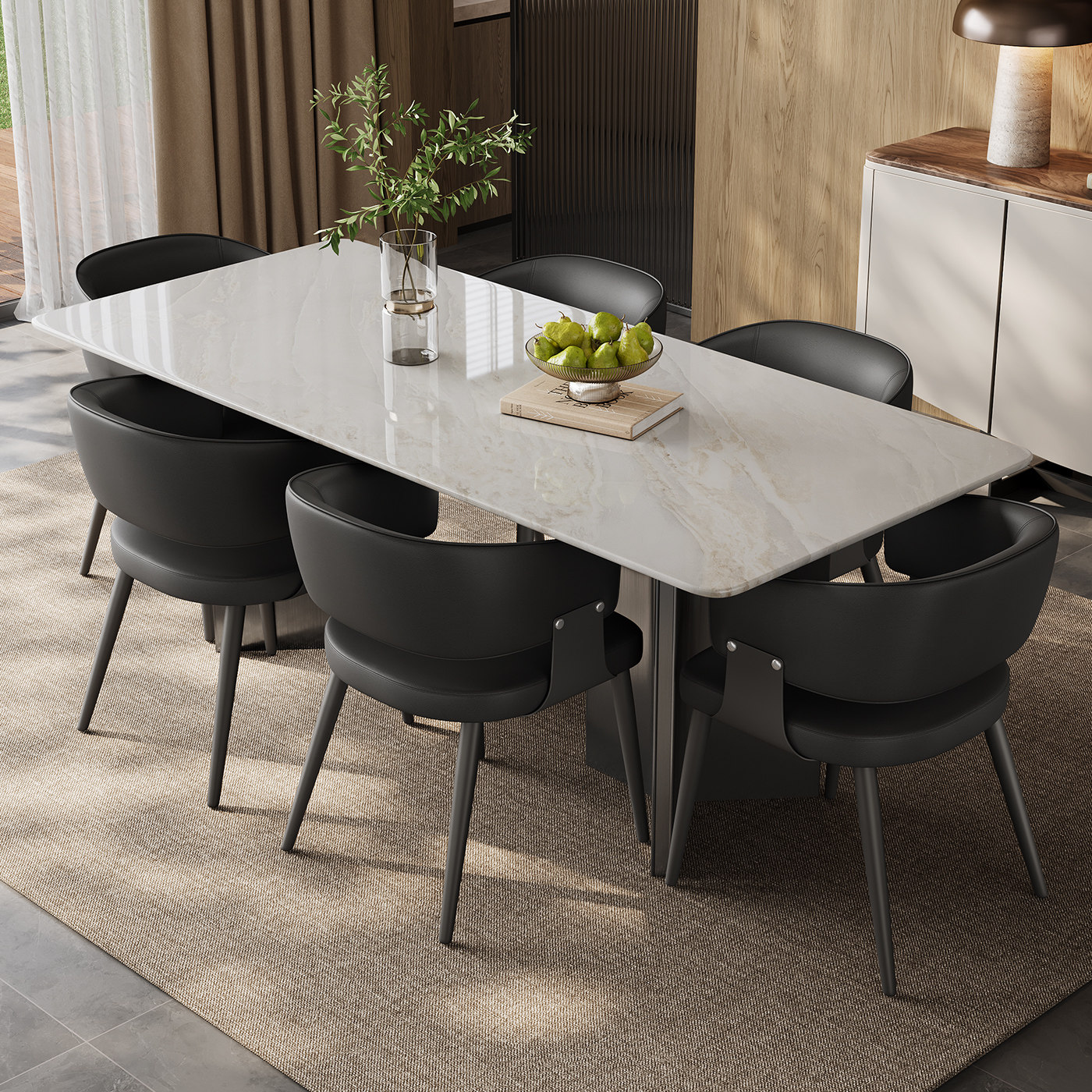 大理石餐桌2025新款家用长方形轻奢高端小户型天然大理石奢石餐桌