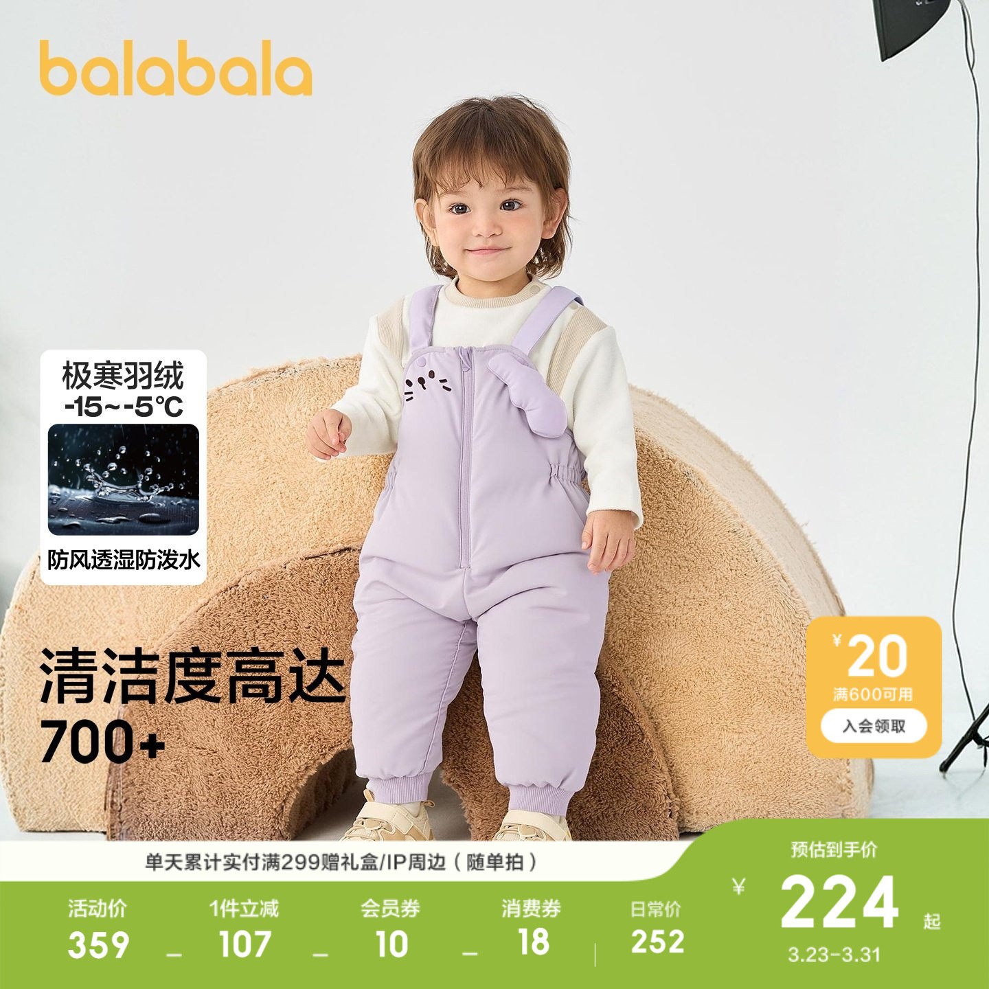 【商场同款】巴拉巴拉宝宝儿童长裤女童羽绒背带裤冬装2026新保暖