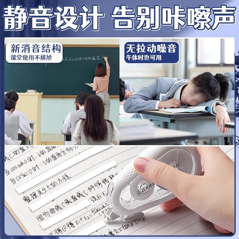 晨光静音耐摔修正带小学生专用大容量三年级实惠装修正贴女生高颜值ins风高中初中生专用优品防摔涂改改错带