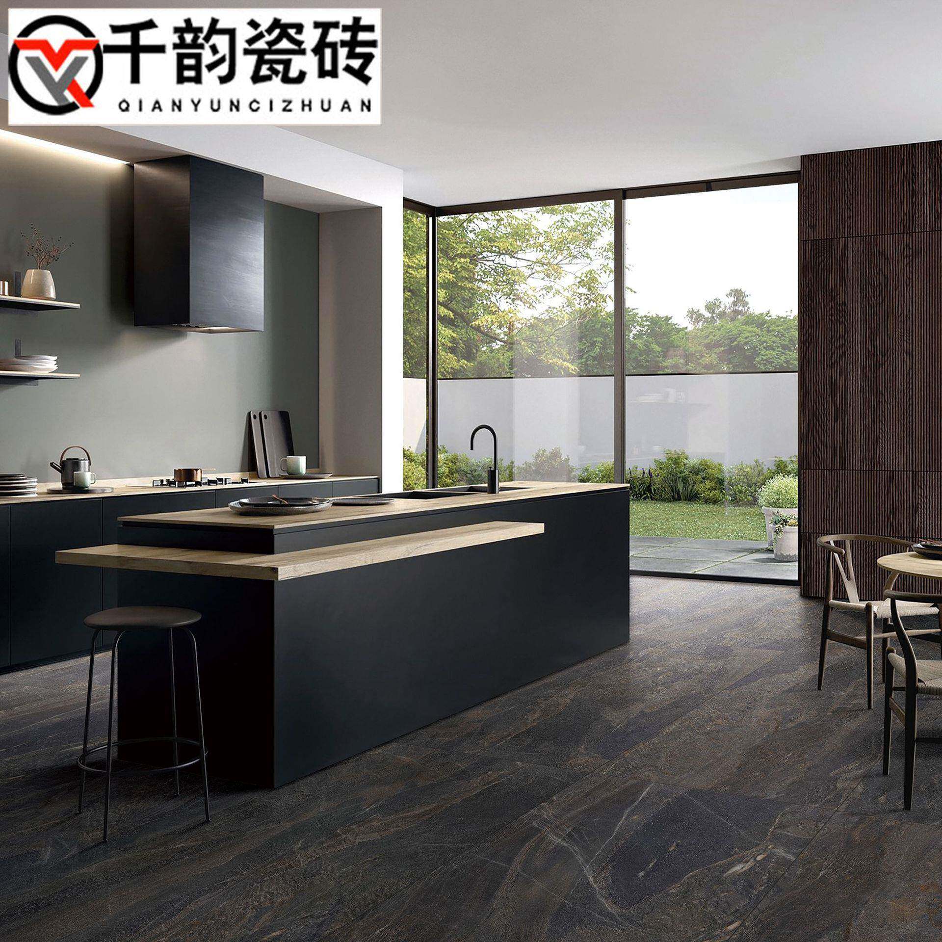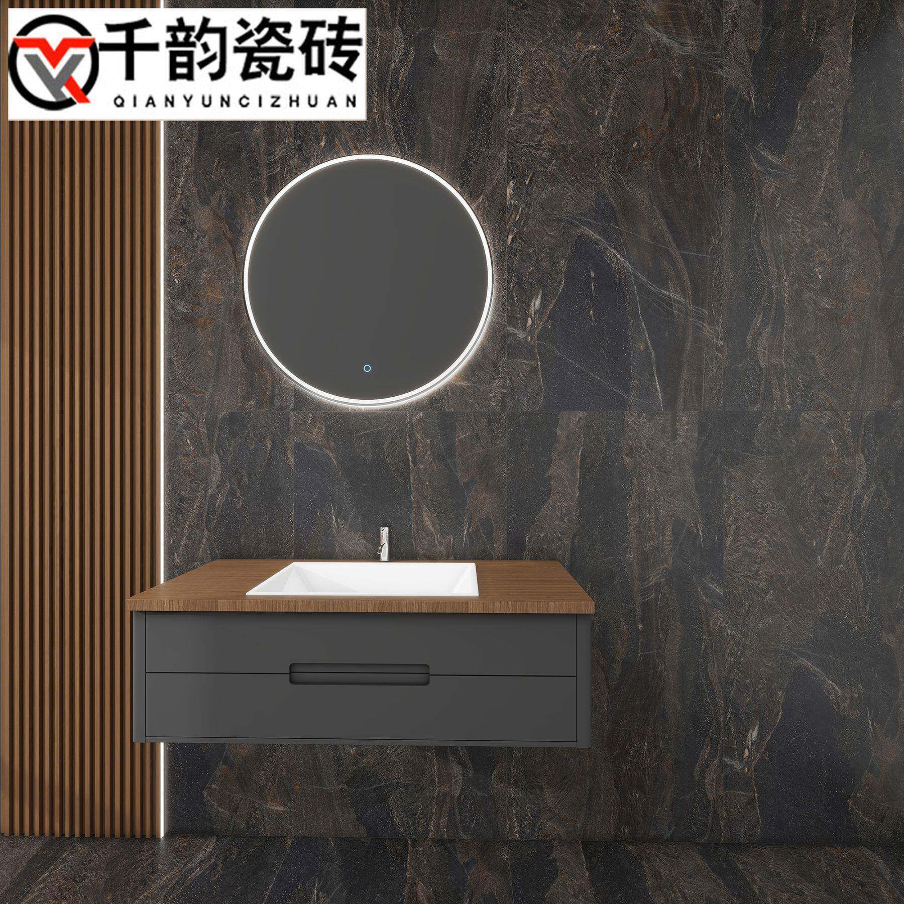 哑光黑色大理石瓷砖600x1200卫生间浴室防滑地砖墙砖仿古砖工程