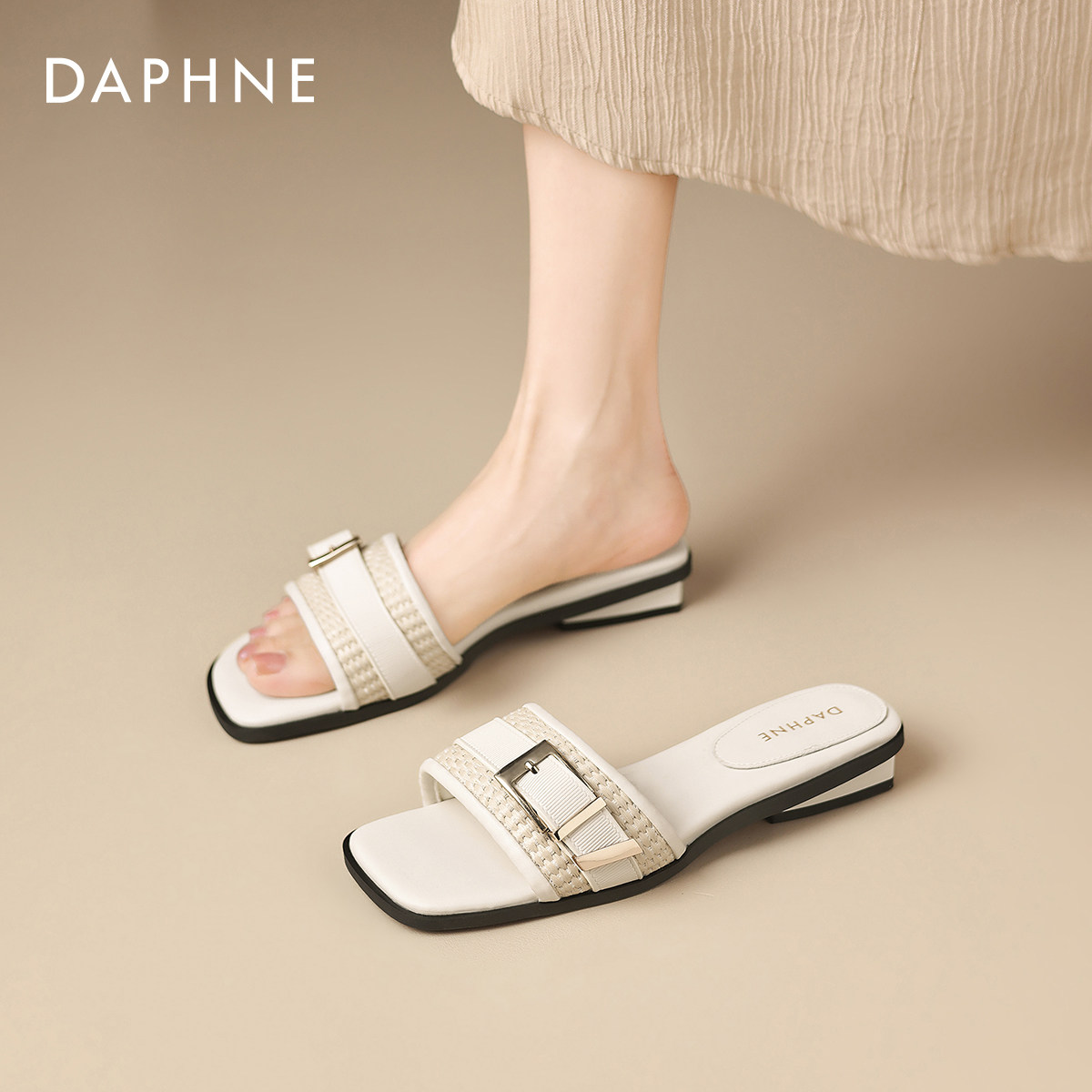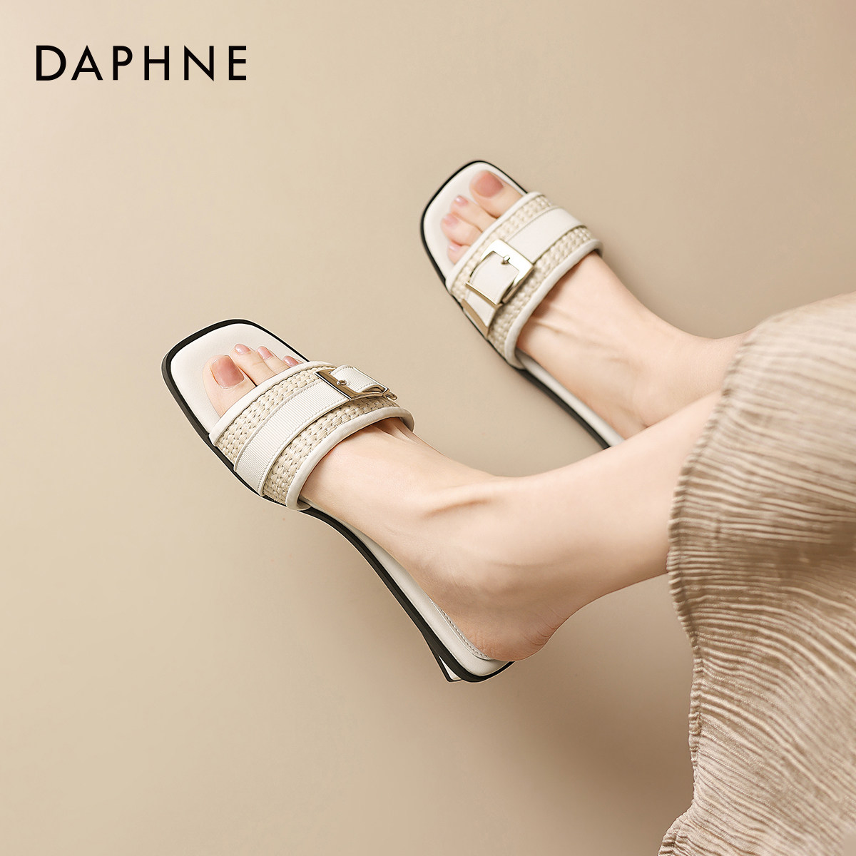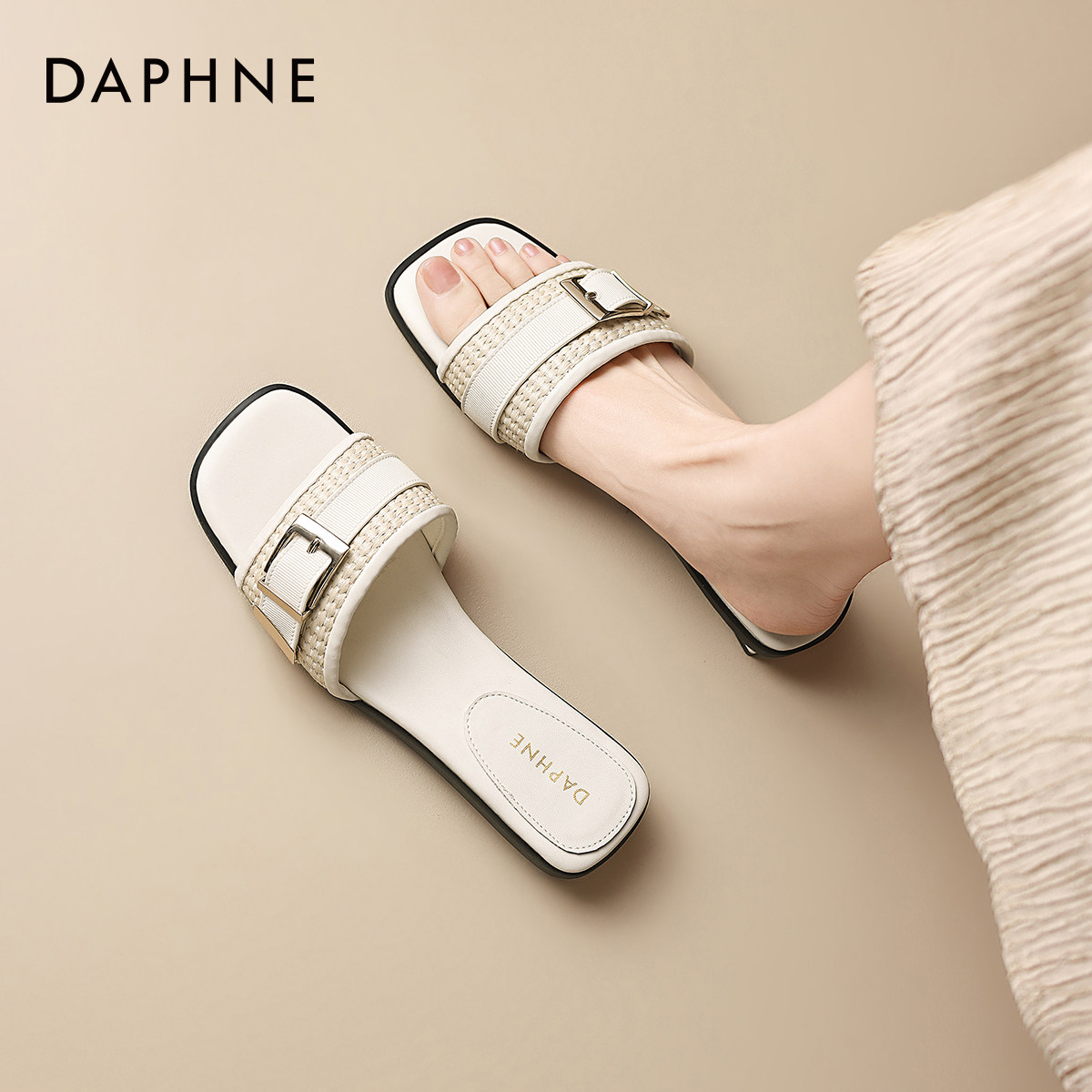 达芙妮拖鞋女外穿夏季2026新款平底凉拖法式绝美一字拖沙滩凉鞋子