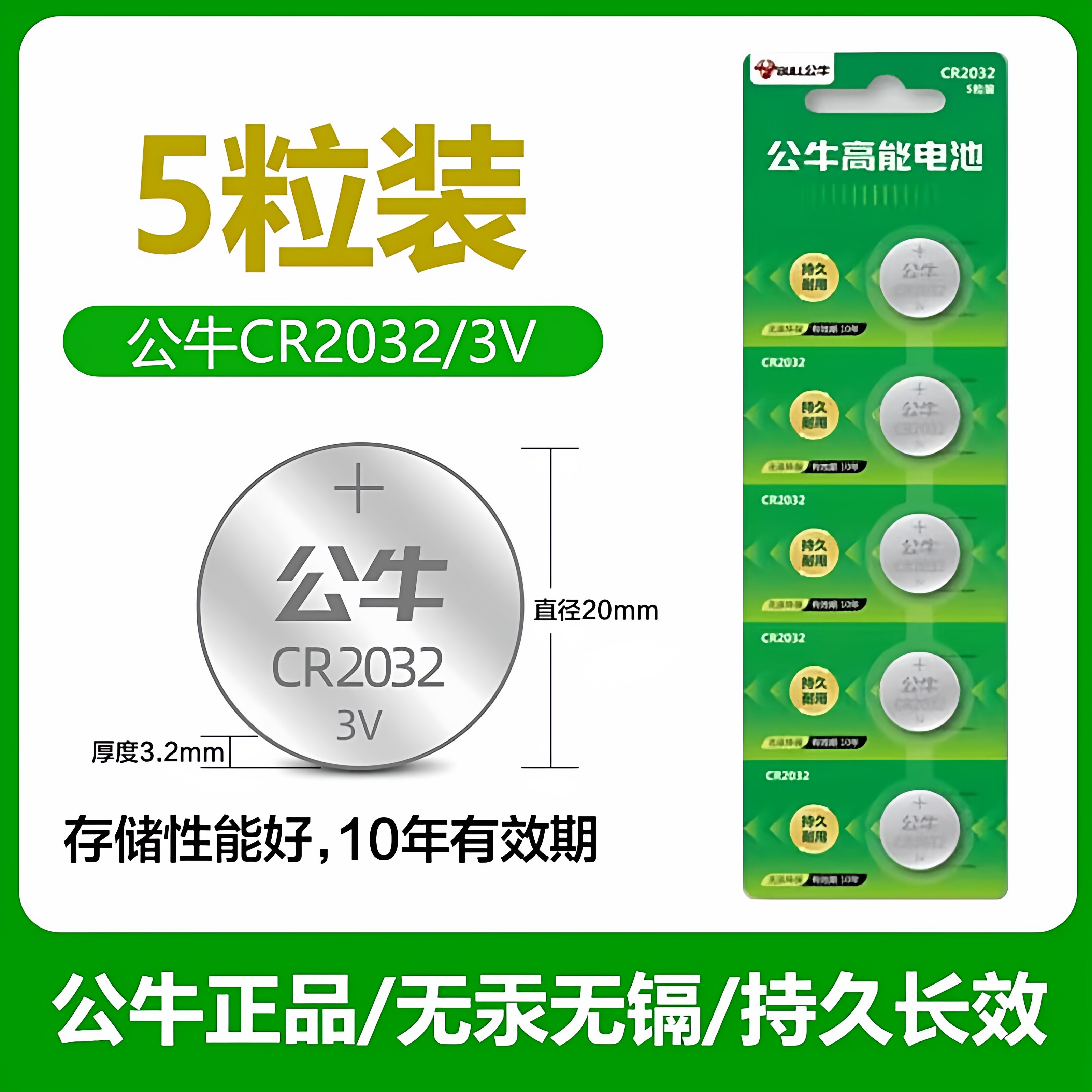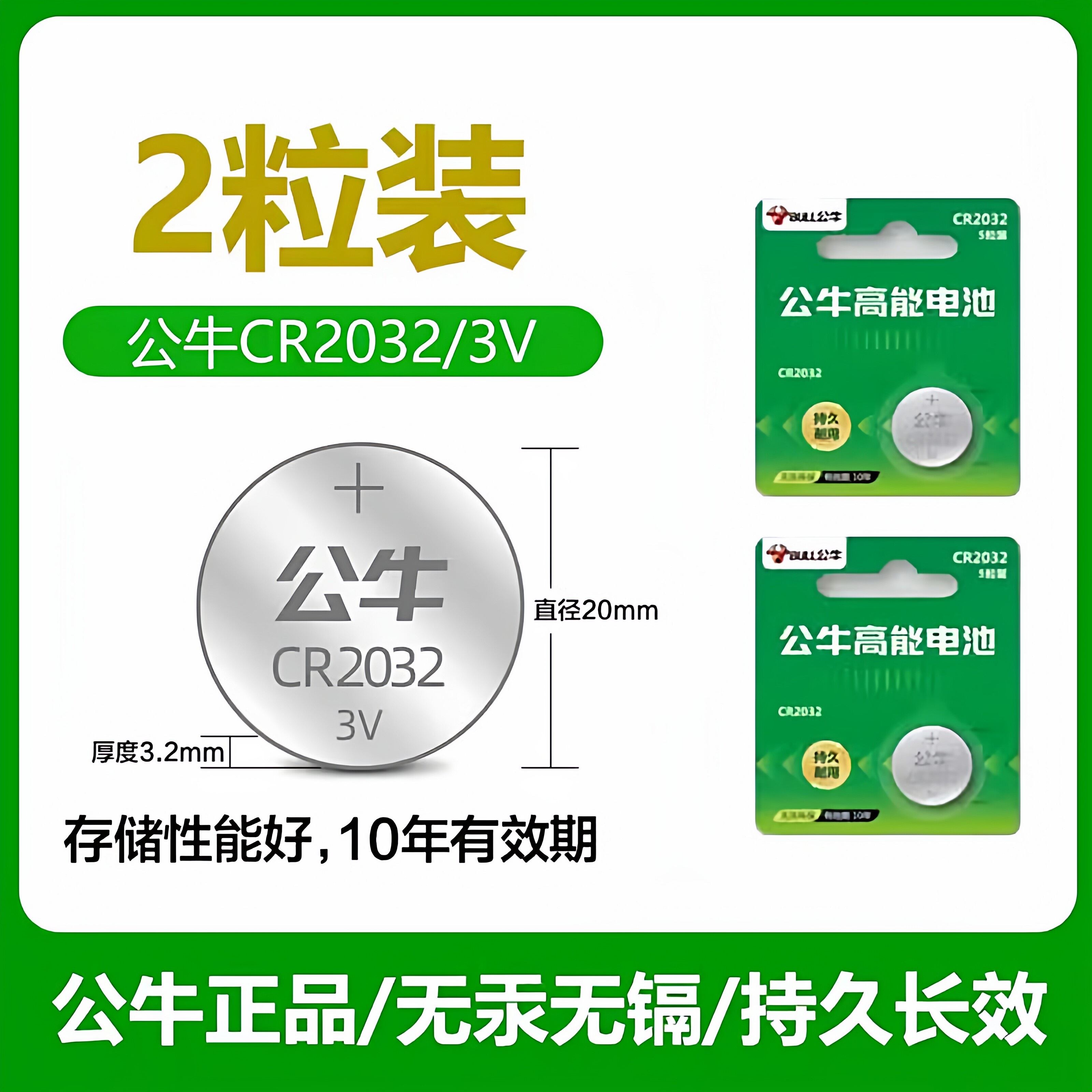 牛家纽扣电池CR2032汽车钥匙遥控器电池CR2025电子秤CR2016主板