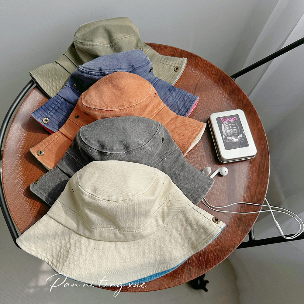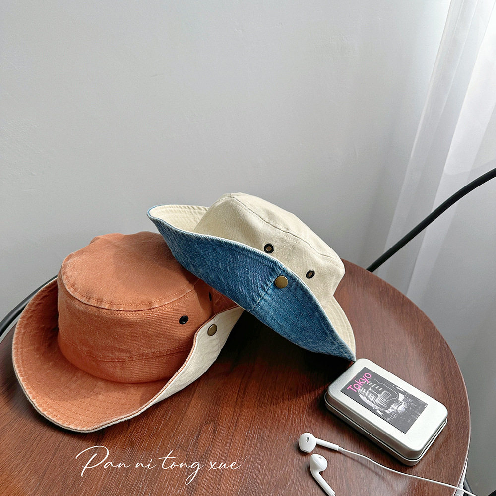 【LH】做旧拼色渔夫帽儿童翻边双色牛仔帽男童个性复古女童遮阳平
